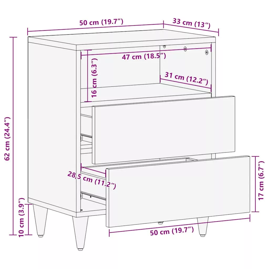 Ez a fából készült éjjeli asztal kiemelkedő darab minden hálószobában a stílusos megjelenésével és praktikus dizájnjával. A letisztult téglalap forma és a gazdag fekete- és aranyszínek egy kis eleganciát csempésznek a szobába. Pont jó méretű, tökéletes lámpák, ébresztőórák vagy könyvek elhelyezésére. A tiszta vonalak és a minimalista stílus varázslatos modern szentéllyé varázsolja a hálószobádat. Tömör Mangófából készült – Kiváló minőségű mangófából készült, ez az asztal tartós és erős. A fa szép erezete van, minden darab egyedi bájjal bír. Stílusos Fém Fogantyúk – A fiókok fekete fém fogantyúkkal vannak szerelve, ami igazán modern hangulatot ad. Nemcsak a látvány miatt, hanem az egyszerű hozzáférés is fontos. Tágas Tárolás – A fiókkal ez az éjjeli asztal rendben tartja a személyes dolgaidat, így mindig szép, rendezett lesz a helyiség. Könnyű Összeszerelés – Az összeszerelése gyerekjáték. Csak kérj meg egy haverot és egy csavarhúzót, és kész is vagy. Az útmutató szuper egyszerű, nem lesz bonyolult. Könnyű Karbantartás – Az asztalt könnyű szép állapotban tartani. Csak töröld le nedves ruhával, ha poros lesz. Kerüld a durva vegyszereket, hogy hosszabb ideig megőrizd a szépségét.