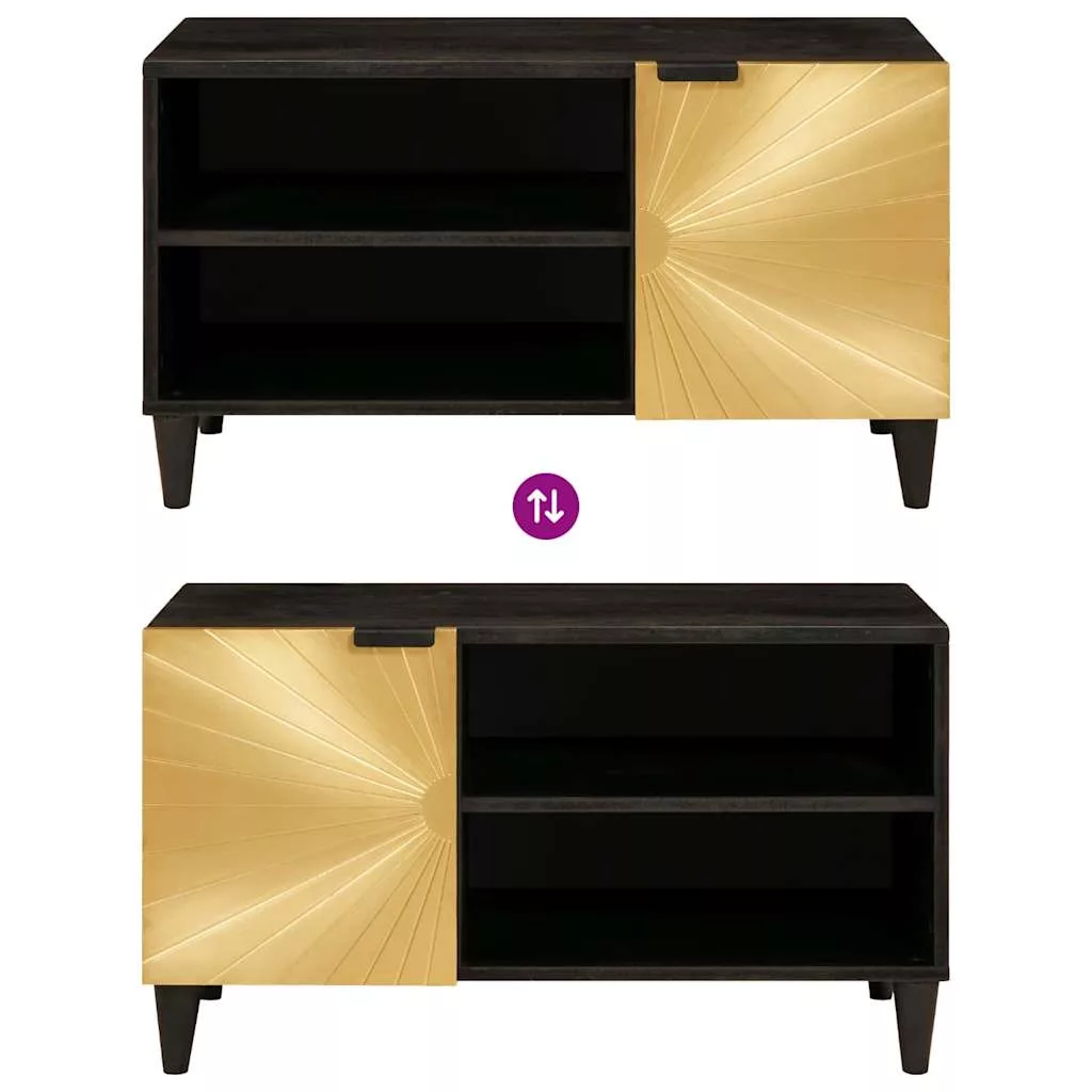 TV szekrény Fekete és Arany 80 x 33 x 46 cm tömör mangófa