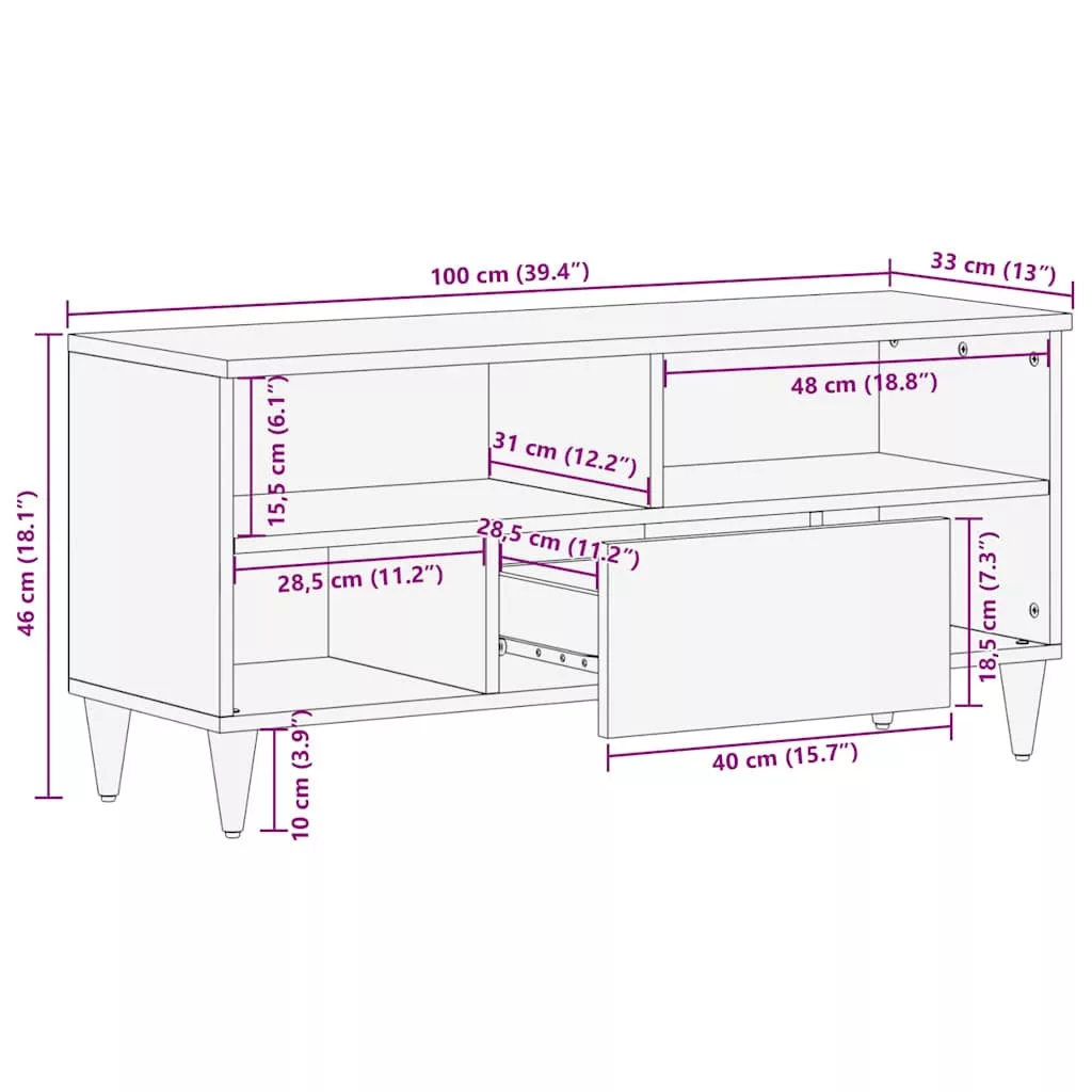 TV szekrény fiókkal Világosbarna 105 x 33 x 46 cm tömör mangófa