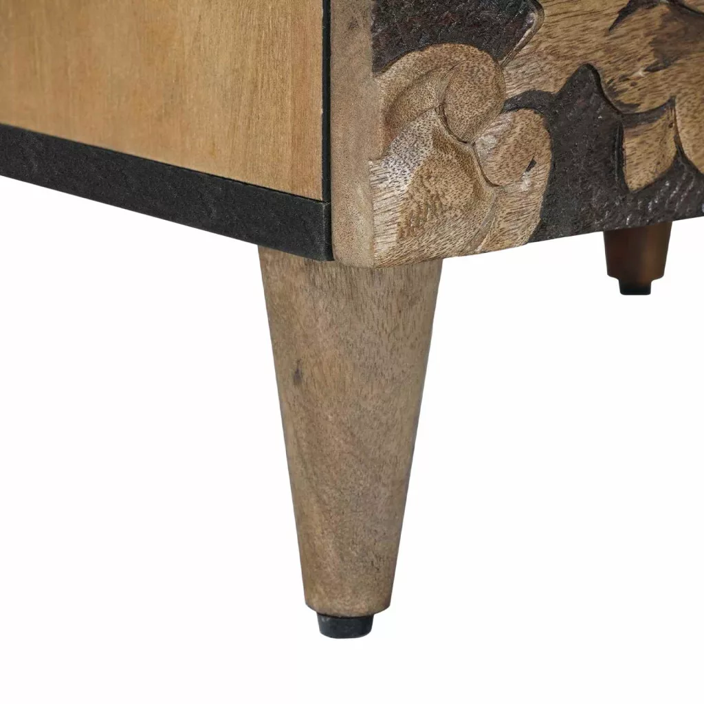 Ez a Tömör Mangófa Éjjeli Szekrény egy különleges generátor bármely hálószobához, ami a természetes melegséget vegyíti a modern dizájnnal. Az elegáns, téglalap alakú forma és az organikus fa textúra egy csipetnyi eleganciát ad a tereidhez. A kompakt formája miatt ideális a városi lakásokhoz vagy kisebb szobákhoz, miközben esztétikai vonzereje nem csökkenti a használati helyét. A mangófa gazdag erezete és változatos színei szuper hangulatot adnak, egyedi megjelenésükkel! Tömör Mangófa: Prémium tömör mangófából készült szekrény, ami a természetes faerezet és különböző színek varázslatos elegyét mutatja. Masszív felépítése tartós, míg a kopásállósága miatt mindennapi használatra is megfelelő. A fa meleg, hívogató atmoszférát teremt a hálószobában, fokozva a kényelmet! Egyedi Dizájn: Mivel a faerezet és a szín egyedisége miatt minden darab különleges, így a kiszemelt szekrény biztosítja az exkluzivitást, és még egyedi jelleget is ad a szobádnak. Kompakt Méretek: A 40 x 33,5 x 46 cm-es mérete tökéletes a kisebb helyiségekhez anélkül, hogy elnyomnák a teret. Praktikus használatával megőrzi a stílusát, egyensúlyt teremtve a funkcionalitás és a látványosság között, ideálissá téve a szűk terekhez! Könnyű Karbantartás: Erőfeszítésmentes karbantartás, csak egy nedves rongyra van szükség a tisztításhoz, így mindig szép és rendben marad minimális erőfeszítéssel. Az egyszerű karbantartási kisokos csökkenti az aggodalmakat a szépsége miatt! Beltéri Használat: Csak beltéri használatra készült, a dizájn simán illeszkedik különböző szoba elrendezésekbe, egy kis stílust és melegséget ad hozzá. A szekrény több funkciót is betölt, mint tároló vagy dekoráció, így gazdagítva a hétköznapi élet élményét!
