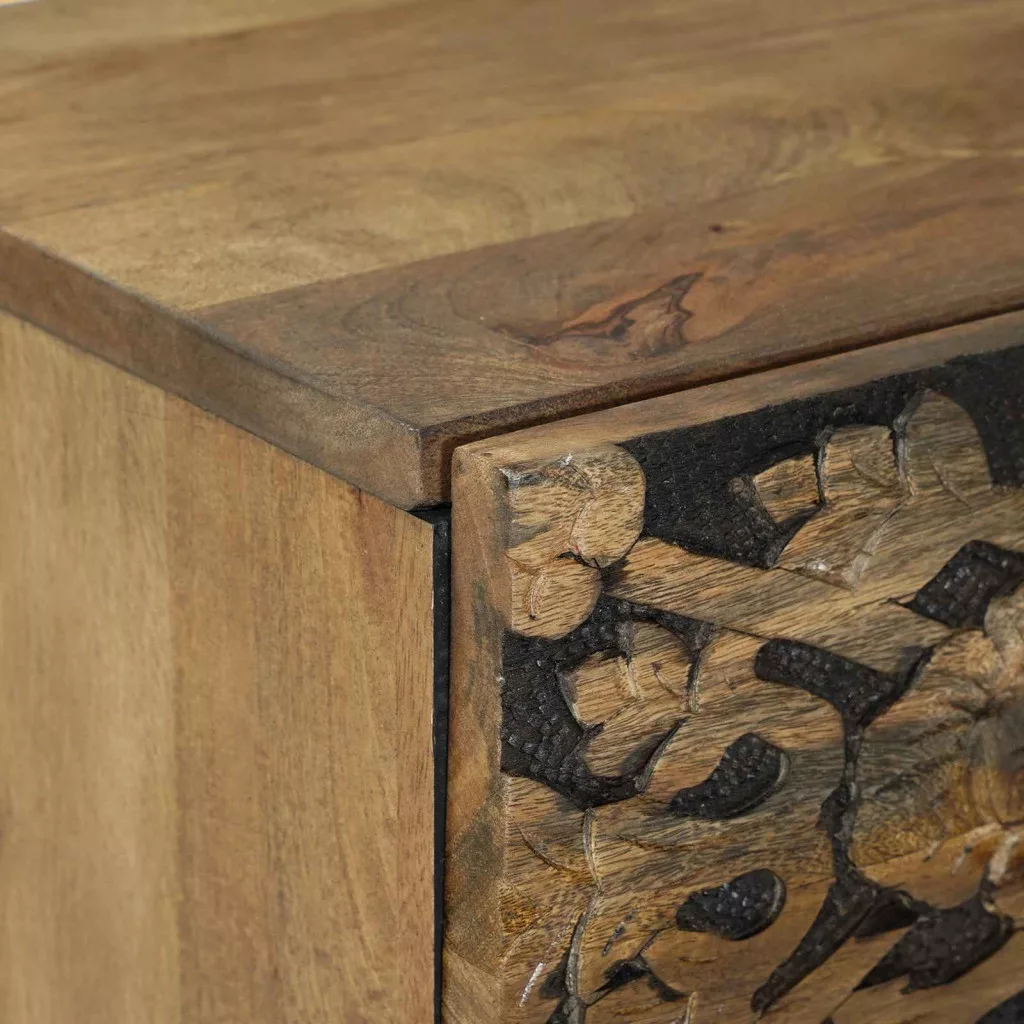 Ez a Tömör Mangófából készült Éjjeli Szekrény stílust hoz a funkcionális megoldások világába. Prémium tömör mangófából készült, ami híres arról, hogy tartós és különleges mintázatú, így minden szekrény egyedi. A téglalap alakja elegánsan passzol bármilyen otthoni dekorációhoz, természetes szépséget és praktikusságot visz a nappaliba vagy a hálószobába. 40 cm széles, 33,5 cm mély és 46 cm magas, így kényelmesen elfér akár kisebb helyeken is, anélkül hogy feláldoznád a tárolást. Prémium anyag: Ez a szekrény teljesen tömör mangófából készült, szuper minőséggel, ami robusztus és vonzó felülettel bír. A tömör mangófa ellenálló és gyönyörű, természetes mintázatokkal rendelkezik, ezért minden darab különleges megjelenésű. Dimenzió és illeszkedés: 40 cm x 33,5 cm x 46 cm méretű, ez a szekrény könnyedén beleillik bármely szoba elrendezésébe. Kompakt mérete ideális választás a kisebb lakásokhoz, ahol a hely értékes. Akár az ágy mellett, akár a nappaliban, ez a szekrény segít a rendetlenkedés elkerülésében. Egyedi minták: A mangófába rejtett természetes variációk miatt minden szekrény más és más mintázattal és színnel bír. Ez a tulajdonság extra látványosságot ad, és biztosítja, hogy minden darab egyedi legyen. Könnyű karbantartás: Hosszú távra tervezve, ez a szekrény minimális gondozást igényel. Egyszerűen törölj le egy nedves ruhával, és máris megőrizheted a szuper kinézetét. Ez a gyors takarítási folyamat biztosítja, hogy a szekrény szépsége megmaradjon a gyakori használat mellett is. Praktikus dizájn: A szekrény áttörten megtervezett téglalap alakja bőséges felületet ad a tetején, miközben rengeteg tárolóhelyet kínál, könyveknek, lámpáknak vagy személyes dolgoknak, így sokoldalú segítőtársa bármely helyiségnek.