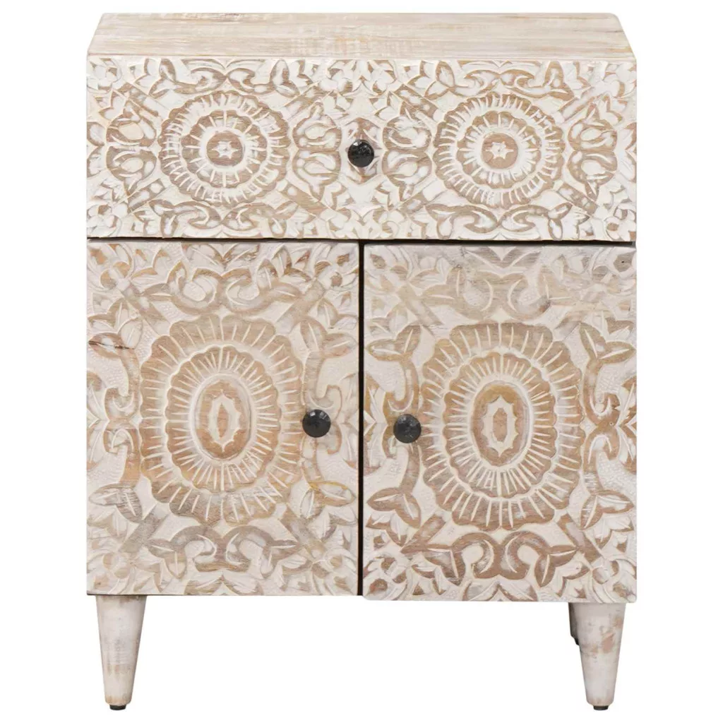 Ágytároló szekrény fiókkal Fehér 50 x 33 x 60 cm Tömör Mangófát