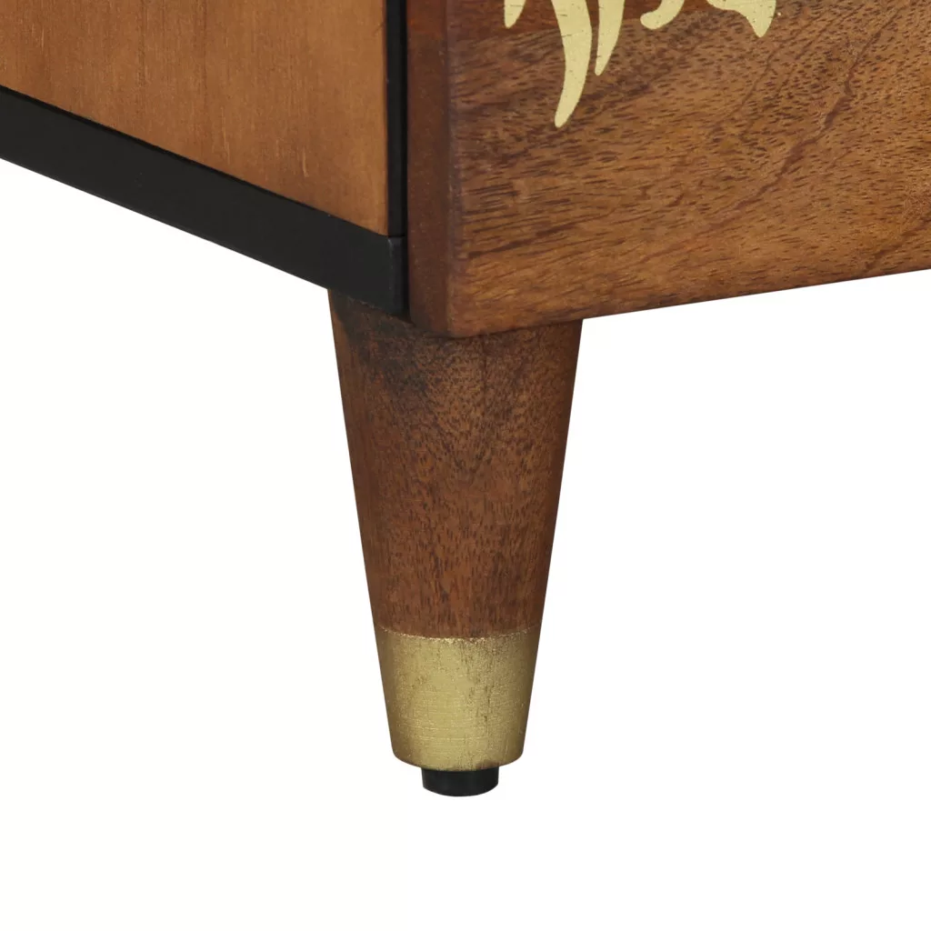 Ez az éjjeli asztal praktikus és stílusos, így tökéletes kiegészítője bármilyen modern hálószobának. Simára polírozott méhészbarna felülete és hagyományos fiókfogantyúi nem csak praktikus tárolást kínálnak, hanem egy szép érintést is adnak, emelve a szobád eleganciáját. Masszív Felépítés: Tömör mangófából készült, ez az éjjeli asztal hosszú életű és tartós. Robusztus kerete ellenáll a mindennapi használatnak, miközben mindig jól néz ki. Letisztult Polírozott Felület: Az asztal szépen polírozott, így csillogó megjelenése van, könnyen tisztítható, és kevés gondoskodást igényel, így mindig top-notch marad. Okos Tárolási Megoldások: Négy tágas fiókkal, mindegyik kényelmes fogantyúval, ez az asztal rengeteg tárolási lehetőséget kínál a személyes tárgyak, könyvek és egyéb szükségesek számára közvetlenül melletted. Stílusos Dizájn: Modern stílusa és egyszerű funkcionalitása megkönnyíti a különböző dekorációs stílusokhoz való illeszkedést, köszönhetően a kúpos láb dizájnjának. Térgazdaságos: Kompakt mérete miatt tökéletesen illeszkedik az ágyak mellé, praktikus használatot és tárolást kínál anélkül, hogy elvenne a helyből.