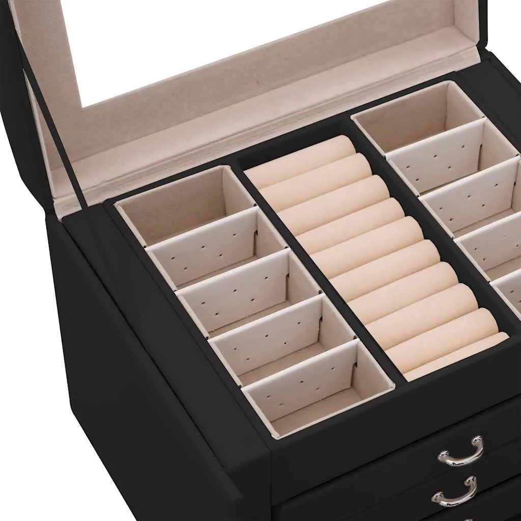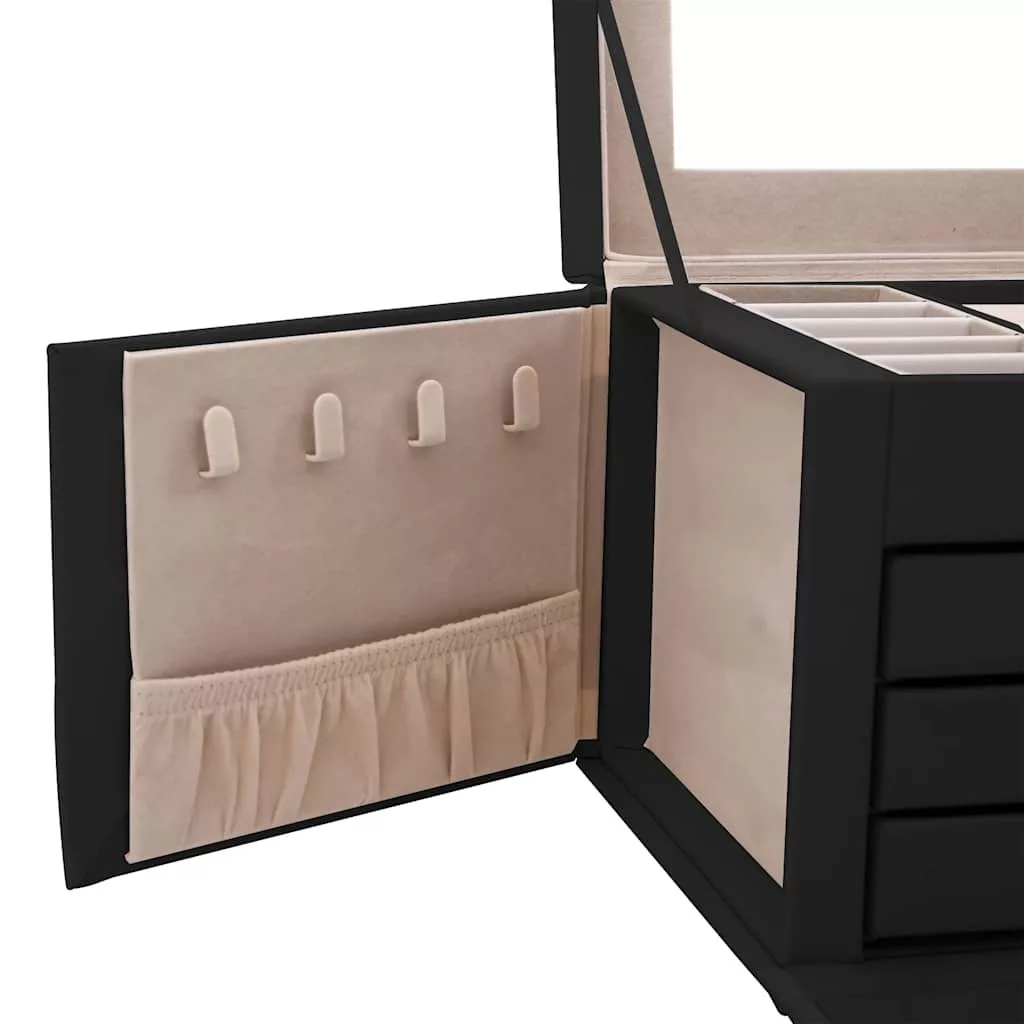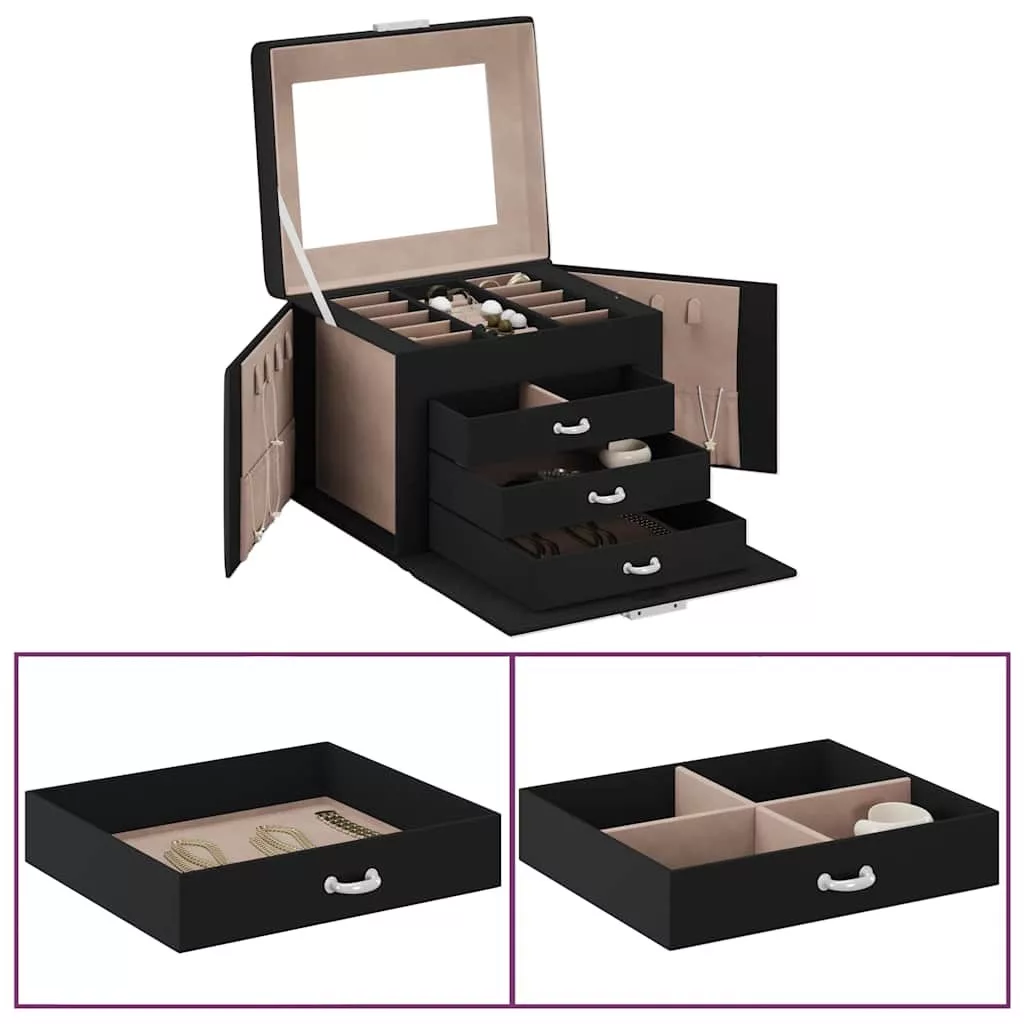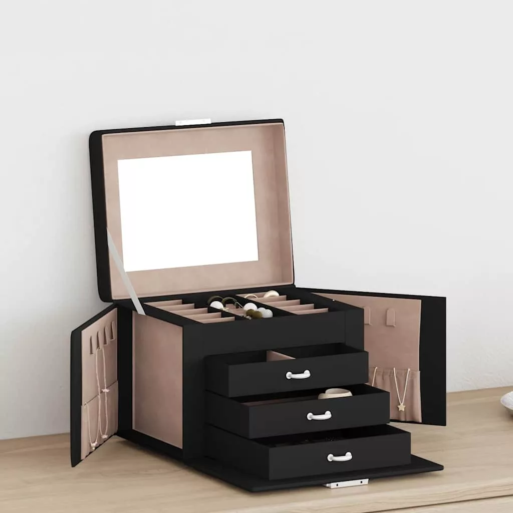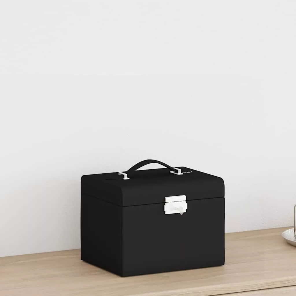 ékszerdoboz 3 rétegű tükörrel zárható fekete 26x18x17,5 cm