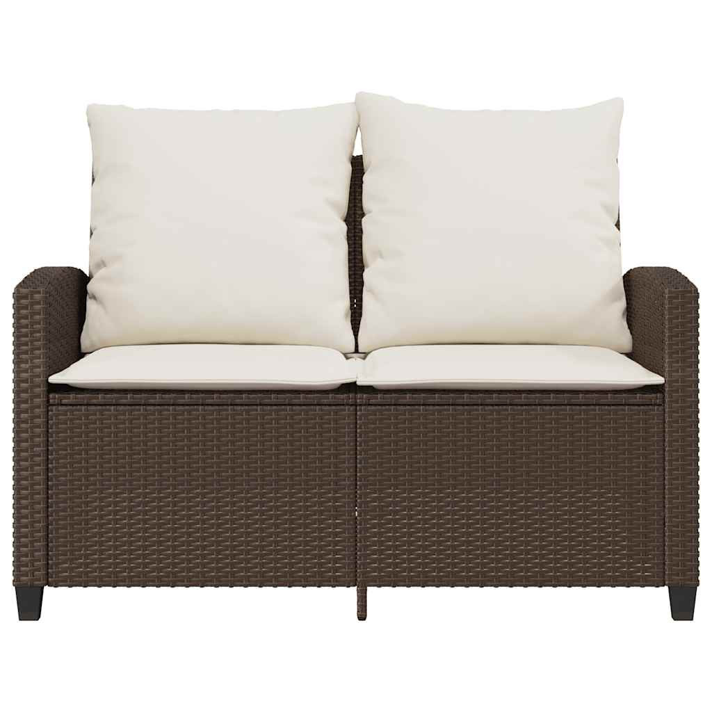 2 személyes barna polyrattan kerti kanapé asztallal&párnával
