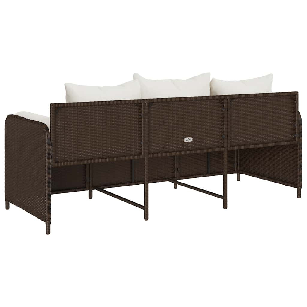 3 személyes barna polyrattan kerti kanapé párnával