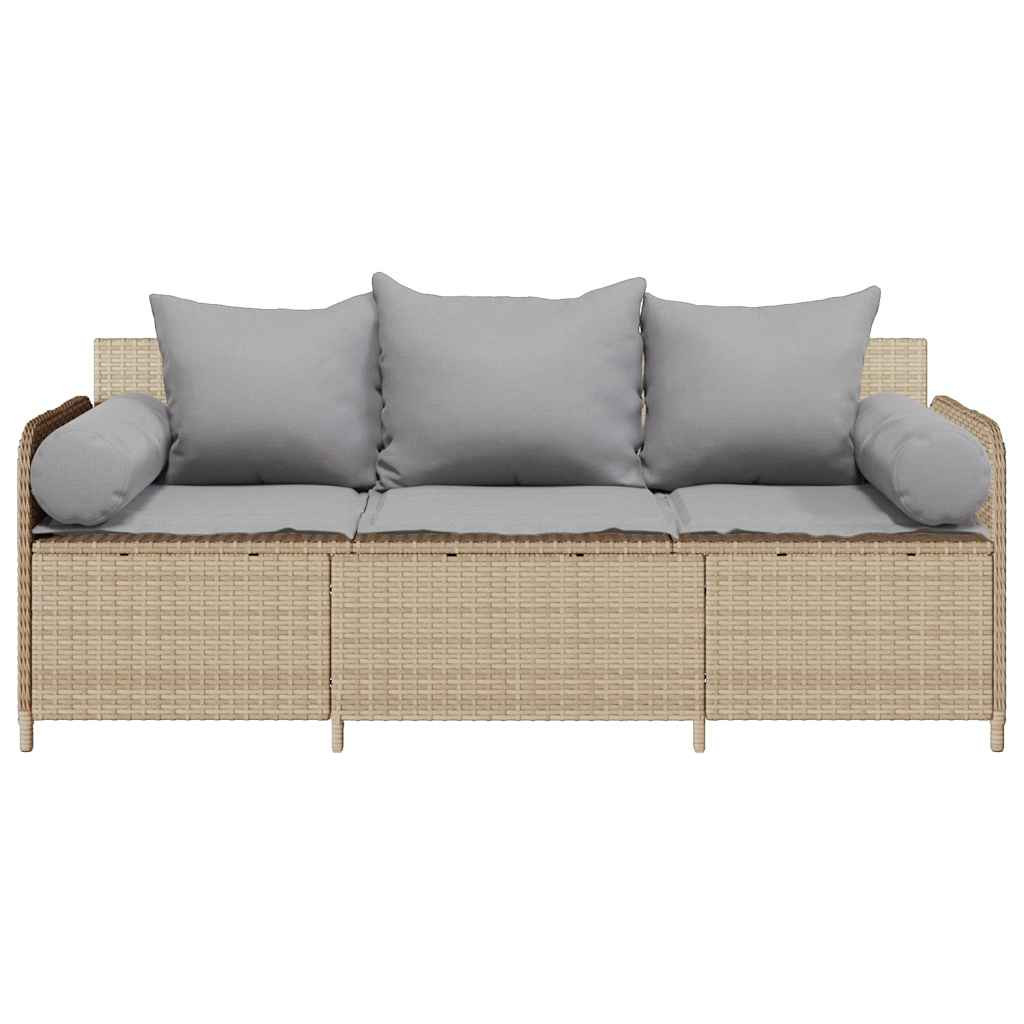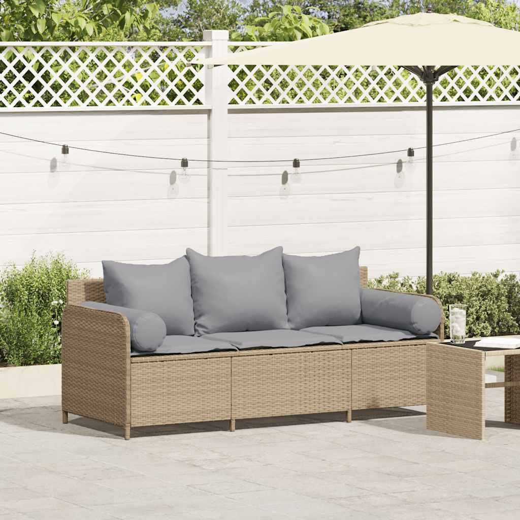 3 személyes bézs polyrattan kerti kanapé párnával
