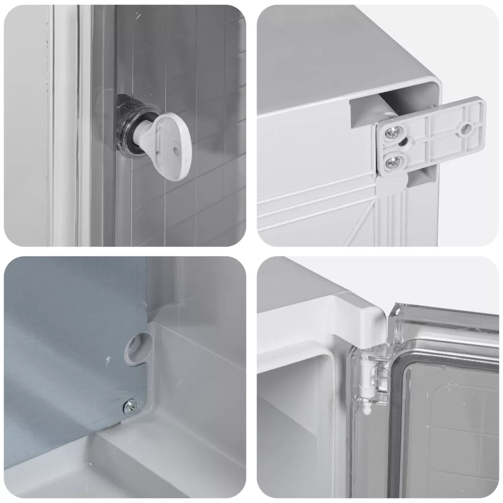 Ez a vezérlőszekrény kötelező választás, ha szilárd tárolási megoldást keresel elektromos berendezésekhez. A praktikus szürke bevonata és vízálló képességei miatt tökéletes a szakmai helyeken vagy otthoni műhelyekben, megvédve értékes elektromos berendezéseidet, miközben jól is néz ki. Ez a vezérlőszekrény tartós fémből készült, így sokáig bírni fogja. Masszív kialakítása könnyen elvisel nehéz körülményeket, tehát ipari vagy otthoni használatra is jó választás. Ezzel a robusztussággal jól jön a tudat, hogy a cuccaid biztonságban vannak. A vízálló funkció lehetővé teszi, hogy a szekrény bírja a nedvességet, ezáltal megvédve az érzékeny elektronikai eszközöket a nedves környezetben. A jól megtervezett forma megakadályozza, hogy az eszközök és alkatrészek nedvesek legyenek, így azok tovább tarthatók. A kulcsos zár is nyújt egy kis biztonságot, biztosítva, hogy a fontos cuccaidhoz csak te férj hozzá. Ez a funkció felelősségteljes tárolást tesz lehetővé műhelyekben és az otthoni garázsban is. Az összeszerelés pofon egyszerű, csupán alapvető eszközökre, mint például fúró és csavarhúzó van szükség, így tökéletes bárkinek, aki rendbe akarja rakni a munkaterületét. Gyorsan összeszerelheted, és már használhatod is a tárolót. Elég sokoldalú ahhoz, hogy különböző felhasználási formákat támogasson, ez a szekrény ideális az otthoni elektromos alkatrészek biztonságos tárolására, garázsokban vagy munkahelyeken. Széleskörű felhasználási lehetőségekkel bír, kielégítve a szakemberek és a lelkes amatőrök igényeit is, akik a funkcióra és stílusra is figyelnek. Ez a készülék nem használható olyan személyek (beleértve a gyermekeket is) által, akik csökkent fizikai, érzékszervi vagy mentális képességekkel rendelkeznek, vagy akik nem rendelkeznek megfelelő tapasztalattal és ismeretekkel, hacsak nem kaptak felügyeletet vagy útmutatást a készülék használatával kapcsolatban egy biztonságukért felelős személytől. A gyermekeket felügyelni kell, hogy ne játsszanak a készülékkel.