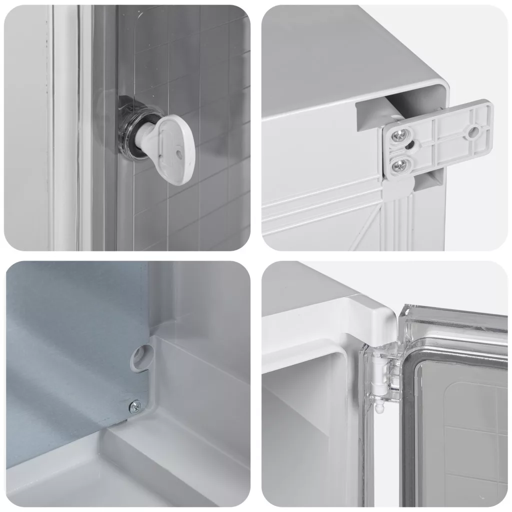 Ez a Vízálló Kormányzó Szekrény kulcsfontosságú megoldás az elektromos alkatrészek biztonságban és szárazon tartásához különböző helyzetekben. Ipari stílusa nemcsak jól néz ki a műhelyekben és garázsokban, de segít rendezni az alapfelszerelést is. A Tartós Anyag garantálja, hogy sokáig bírja a nehéz körülmények között is, biztosítva a benne tárolt dolgok biztonságát. A Vízálló funkció életmentő nedves helyeken, megvédve az elektromos alkatrészeket a vízkártól. A Biztonságos Hozzáférés dizájn, kulcsos zárral, megnöveli a biztonságot, lehetővé téve, hogy csak a jogosultak férjenek hozzá fontos eszközökhöz. Könnyen Telepíthető, gyorsan összeszerelhető szinte bárhol pár szerszámmal. A Sokoldalú Alkalmazások biztosítják, hogy többféle helyszínen is jól működjön, a műhelyektől kezdve a kültéri használati területekig, megőrizve a cuccaidat biztonságban és rendezetten. Ez a készülék nem használható olyan személyek (beleértve a gyermekeket is) által, akik csökkent fizikai, érzékszervi vagy mentális képességekkel rendelkeznek, vagy akik nem rendelkeznek megfelelő tapasztalattal és ismeretekkel, hacsak nem kaptak felügyeletet vagy útmutatást a készülék használatával kapcsolatban egy biztonságukért felelős személytől. A gyermekeket felügyelni kell, hogy ne játsszanak a készülékkel.