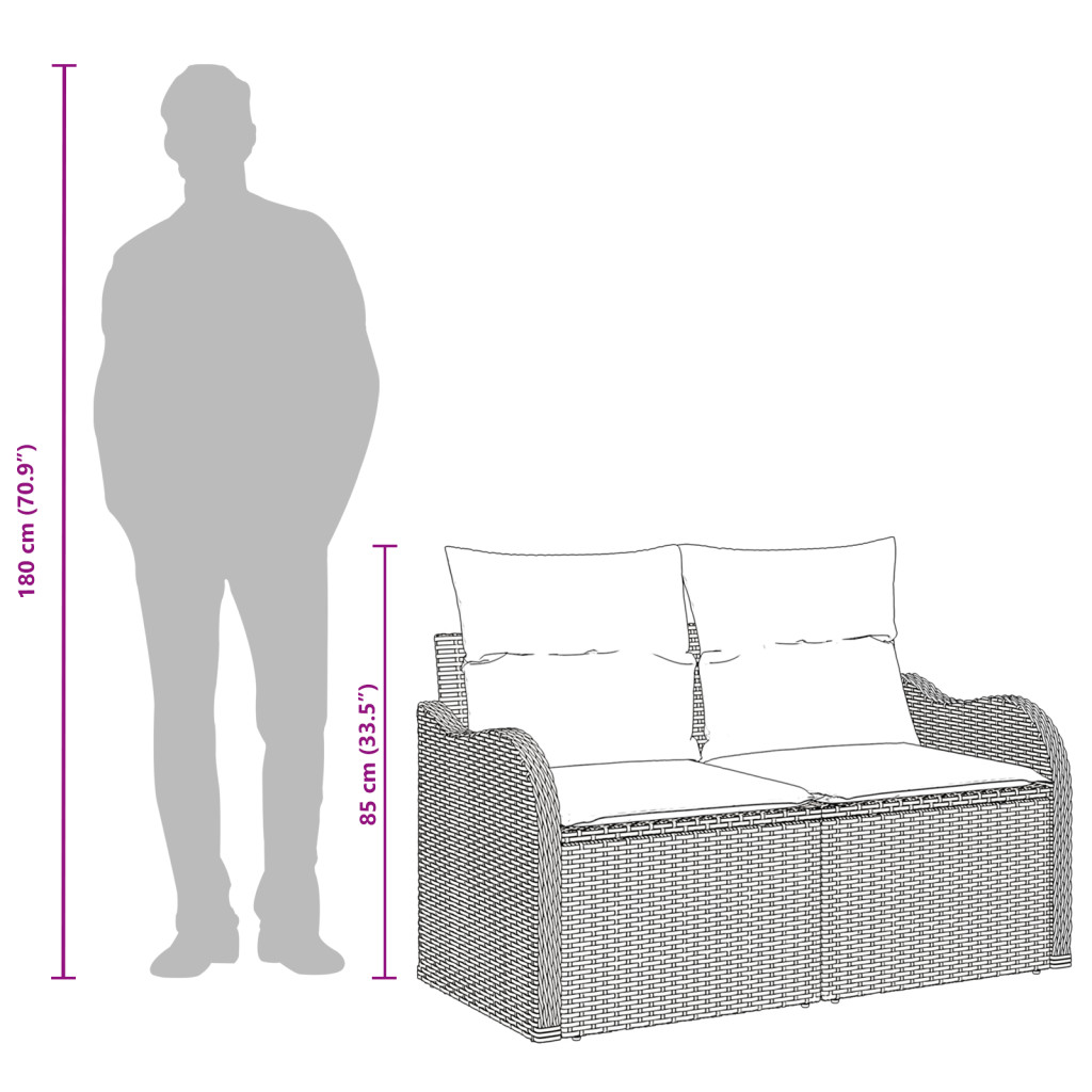 2-Személyes Kerti Kanapé Párnákkal Fekete Poli Rattan