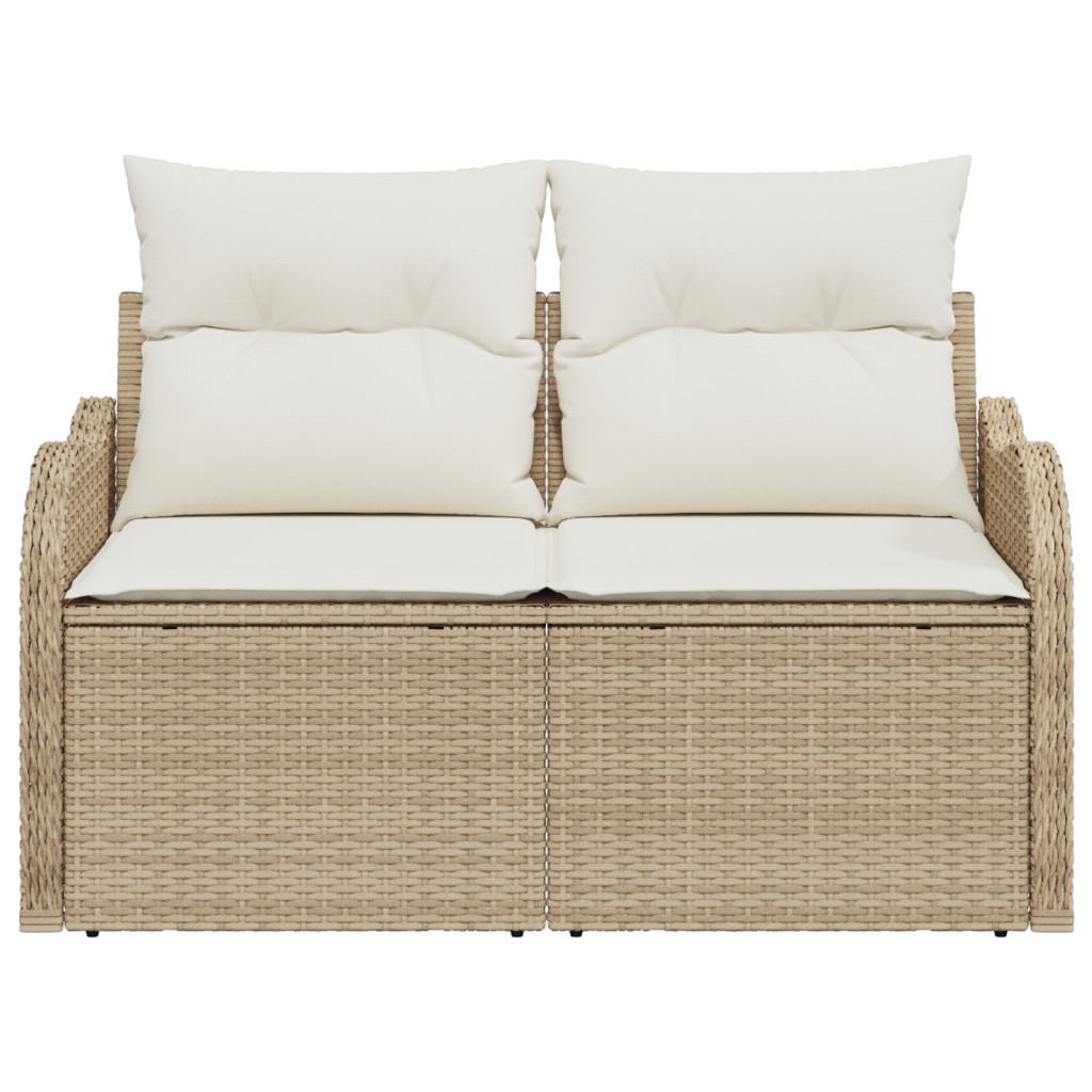 2-személyes Kerti Kanapé Tárolóval és Párnákkal Bézs Pól Rattan