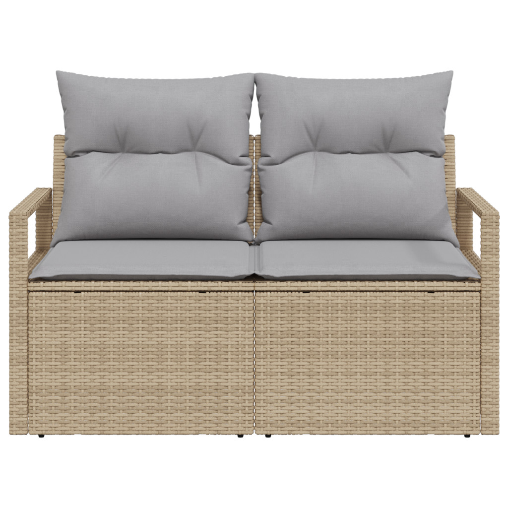 2-Fős Kerti Kanapé Tárolóval és Párnákkal Bézs Polirattan