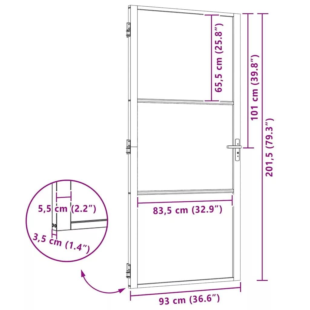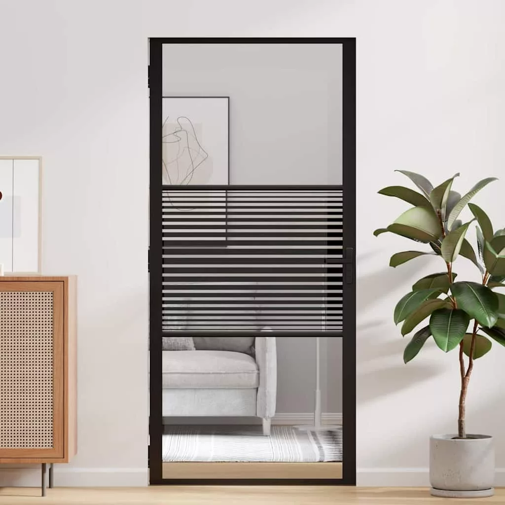 Belső Ajtó Fekete 93 x 201.5 cm Edzett üveg, Alumínium