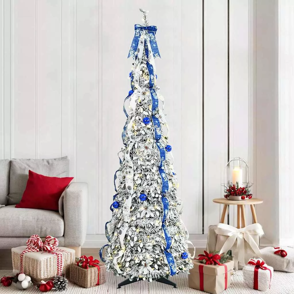 Hozd el a karácsonyi hangulatot ezzel a mű karácsonyfával, ami az Art Deco stílusban készült. A kúpalakú fa szuperül néz ki nappaliban, kertben vagy teraszon, élénk zöld színével és elegáns megjelenésével. 8 LED-es villogó móddal van felszerelve, így biztosítja a meleg, ünnepi fényt, és USB tápellátású, tehát könnyen használható. Ez a fa egy szép kiegészítő a karácsonyi dekorációdhoz, ami felidézi a karácsony régi báját. Prémium anyagok: Ez a műfa tartós PVC-ből és szilárd vas csövekből készült, így hosszú élettartamot biztosít. A PVC anyag élethű lombozatot ad, a vas váz pedig stabilan tartja az egész szerkezetet, így tökéletes középpontja lehet a karácsonyi buliknak. Világító varázslat: Meleg fehér LED lámpákkal és fényfüzérekkel díszített fa barátságos fényt teremt. Egyenletesen osztja el a fényt a szobában, és kiváló ünnepi hangulatot biztosít. USB-n keresztül vezérelhető, és a világítási minták könnyen változtathatók, hogy a hangulatodhoz igazíthasd. Összecsukható dizájn: Teljesen összecsukható, így nagyon egyszerűen összeállítható és szétszedhető. Az ünnepek vége után könnyedén elrakható, szuper megoldás, ha kicsi a helyed. Stílusos jellemzők: Az Art Deco inspirálta dizájnja eleganciát és pompát ad a térnek. Ez a dísz szuper lehetőséget kínál, hogy saját ízlésed szerint díszítsd szalagokkal és csecsebecsékkel, minden évben új ötleteket valósítva meg. Ápolási utasítások: Tartsd meg szép állapotát száraz ruhával való törléssel. Kerüld az erős vegyszerek használatát, hogy megőrizzük a fényes felületét. Az egyszerű karbantartás biztosítja, hogy minden évben ragyogó marad, és folytathasd az ünnepi hagyományokat.