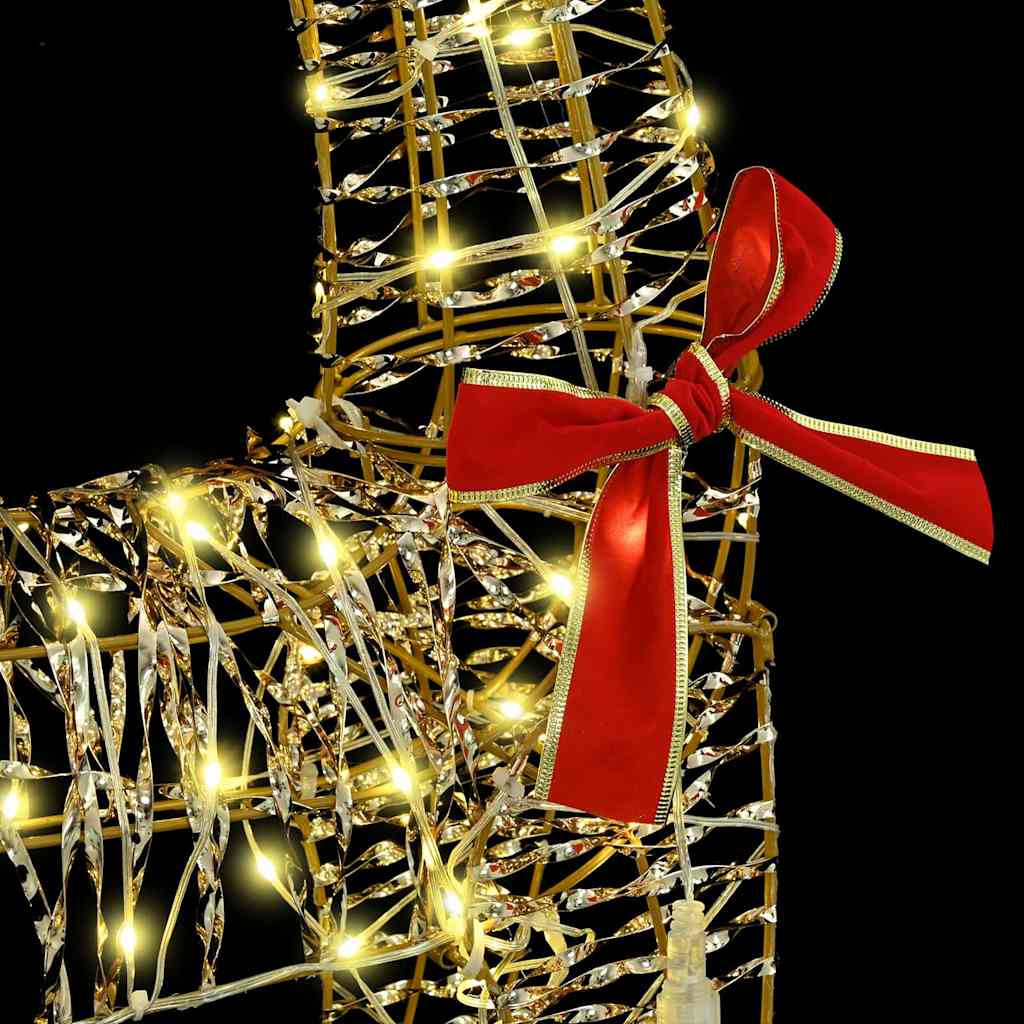 Ez a rénszarvas szán a tökéletes kiegészítő minden ünnepi hangulathoz, a modern esztétikáját ötvözi az időtlen karácsonyi bájjal. Azoknak készült, akik igazán meg akarnak merülni a karácsonyi szellemben, ez a figyelemfelkeltő dekoráció igazi karaktert és melegséget ad bármely térhez, legyen az nappali, hall vagy kert. A bájos rénszarvas, amit egy szán húz, tökéletesen megragadja a karácsonyi örömöt és csodát. A meleg fehér LED fényekkel díszített figura lágy fényt sugároz, amely gyönyörűen harmonizál a beltéri és kültéri környezetekkel, bemutatva a kifinomultságot és az ünnepi eleganciát. Különböző ünnepi témákhoz is remekül illik, sima, modern stílusa tiszteletben tartja a hagyományos ünnepségek esszenciáját, miközben kortárs csavart ad hozzá. Minőségi világítás: A rugalmas LED szalagsorozatokkal felszerelt rénszarvas szán bármilyen helyszín hangulatos fényt teremt. A meleg fehér árnyalat barátságos hangulatot ad, így tökéletes a kellemes beltéri terekhez és kültéri dekorációkhoz. USB kényelem: A figura táplálása egyszerű és sokoldalú az integrált USB-csatlakozónak köszönhetően. Ez a funkció lehetővé teszi, hogy bárhol elhelyezd, ahol áramforrás van, rugalmas elhelyezést biztosítva. Sima dizájn: Modern megjelenése tiszta vonalakkal és minimális díszítéssel jól illik bármilyen helyhez. Az egyszerűségre helyezett hangsúly összhangban van a hagyományos ünnepi elemekkel, kifinomult stílus mellett. Térkímélő: A 54 x 19 x 120 cm-es méreteivel szűk helyekhez is illik, anélkül, hogy túlzsúfolná a teret, ami nagyszerű választás azok számára, akik a hatékony helykihasználásra törekednek. Összeszerelési igények: A DIY lelkesedők örömmel rakhatják össze ezt a kiegészítőt, így egyedi érintést adva az ünnepi megjelenésükhöz. Minden szükséges elem benne van, így zökkenőmentes beállítást biztosít. Ez a termék DC 5V-ról működik, de a tanúsított 5V-os USB-tápforrást nem tartalmazza. A magasabb feszültség túlmelegedést okozhat, ami a készülék károsodását, valamint a túlmelegedés és a tűz esetleges kockázatát okozhatja.