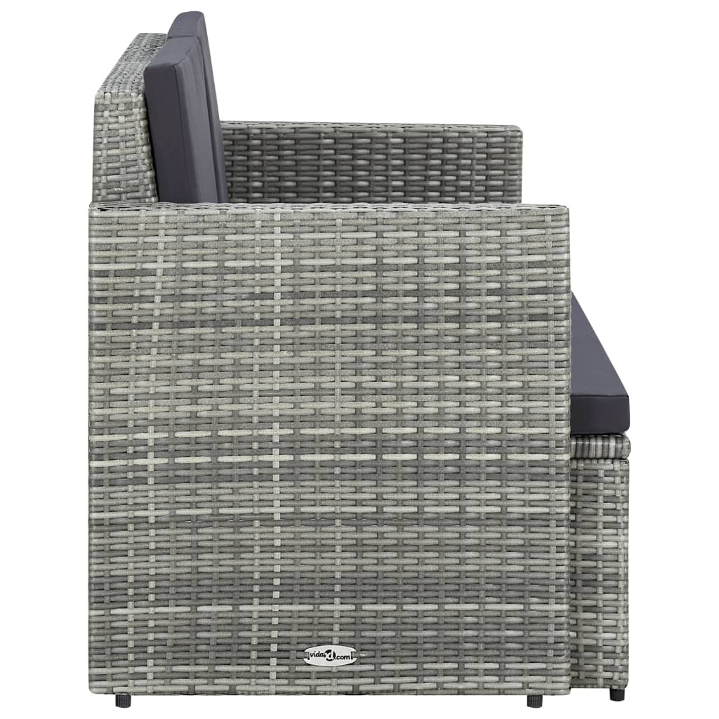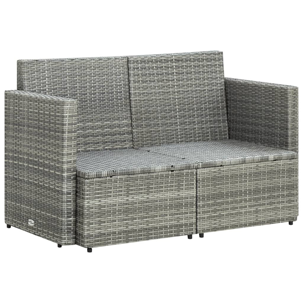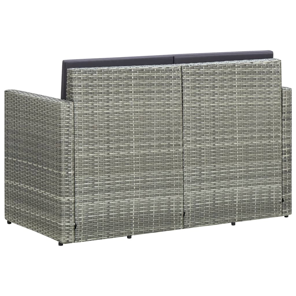 szürke kétszemélyes polyrattan kerti kanapé párnákkal