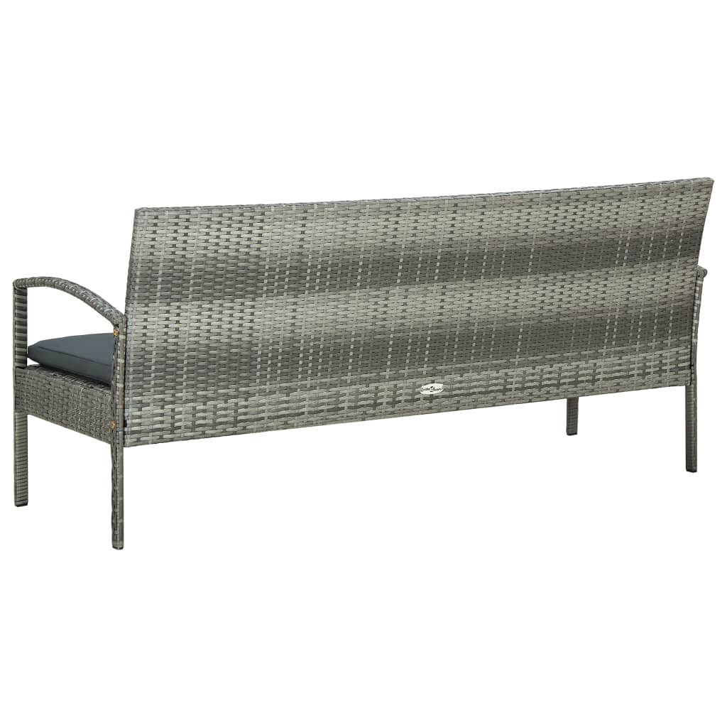 3 személyes szürke polyrattan kerti kanapé párnával