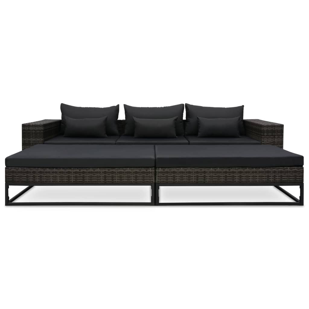 5 részes szürke polyrattan kerti bútorszett párnákkal