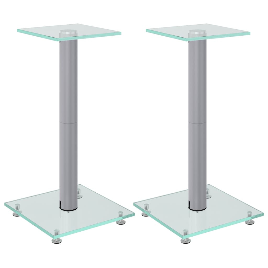 2 db 1-oszlopos ezüstszínű edzett üveg hangszóró állvány