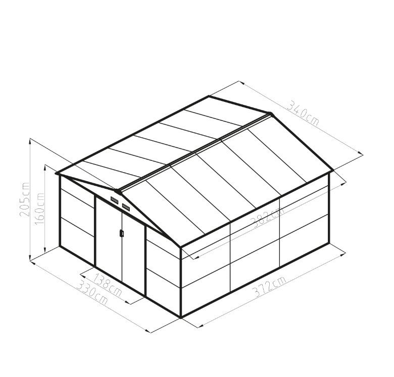 A stabil, horganyzott keretre rögzíti az acél, porszórt lemezeket, amelyek ellenállnak a rossz időjárási viszonyoknak. A csomag tartalmaz ajtózárakat, amelyekkel könnyen megvédheti a házat a hívatlan vendégektől.