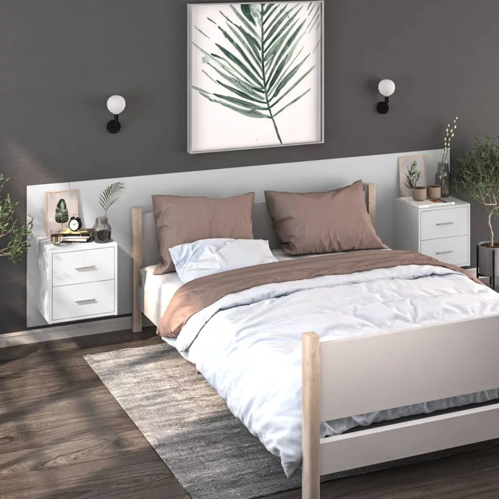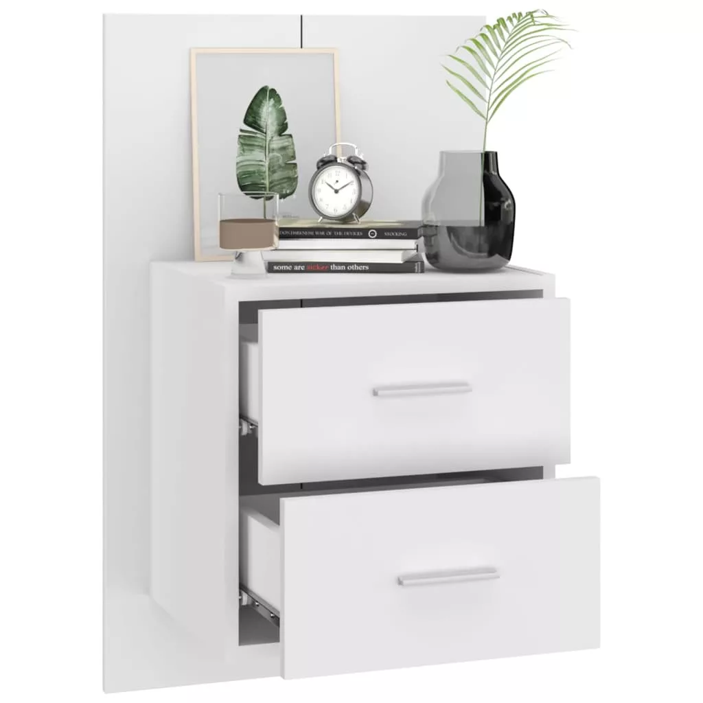 magasfényű fehér falra szerelhető éjjeliszekrény