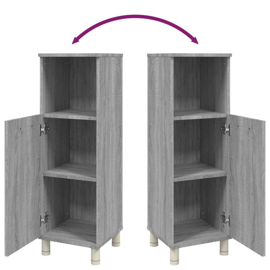 szürke sonoma színű szerelt fa fürdőszobaszekrény 30x30x95 cm