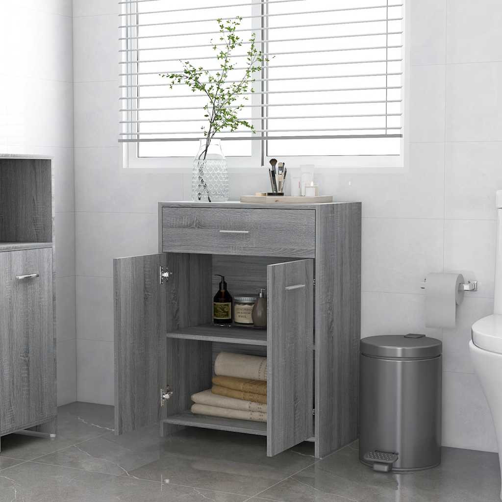 szürke sonoma színű szerelt fa fürdőszobaszekrény 60x33x80 cm