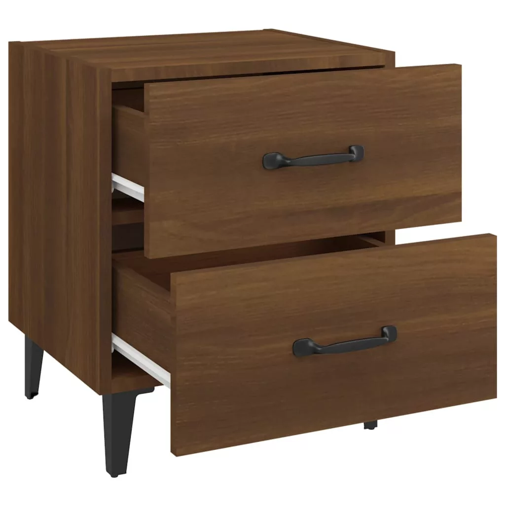 Csempésszen egy csipetnyi ipari bájt otthonába ezekkel az éjjeliszekrényekkel. Prémium minőségű anyag: A szerelt fa kivételes minőségű, sima felületű, szilárd, stabil és ellenáll a nedvességnek.Masszív lábak: A fém lábak elbűvölő ipari stílust csempésznek otthonába, és a stabilitásról is gondoskodnak. Bőséges tárolóhely: Az éjjeliszekrény két, fém fogantyúval ellátott fiókkal rendelkezik. A tágas fiókokban rendezetten tarthatja holmiját. Masszív felső lap: Az ágy melletti éjjeliszekrény masszív lapja ideális dísztárgyak, képkeretek vagy cserepes növények elhelyezésére.