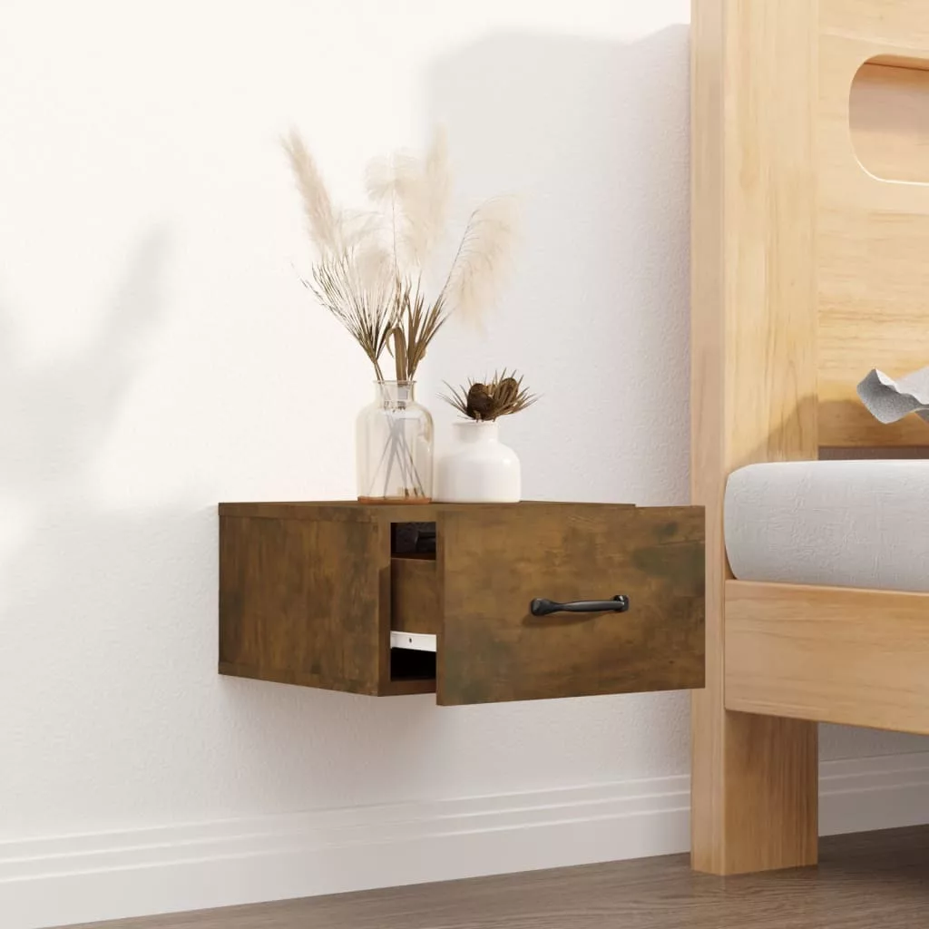 füstös tölgy színű falra szerelhető éjjeliszekrény 35x35x20 cm