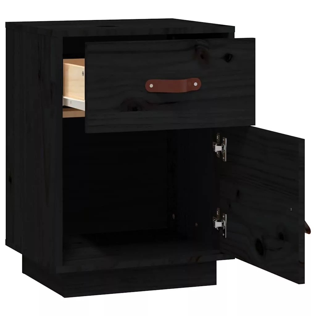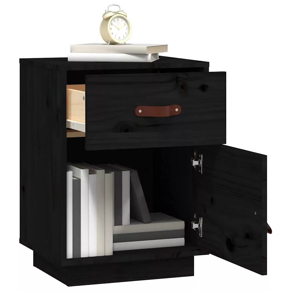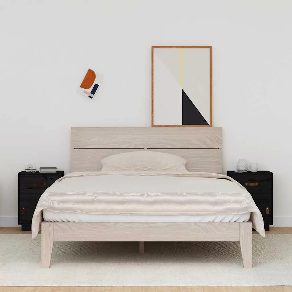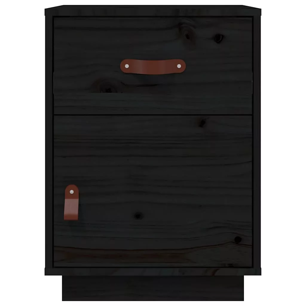 2 db fekete tömör fenyőfa éjjeliszekrény 40 x 34 x 55 cm
