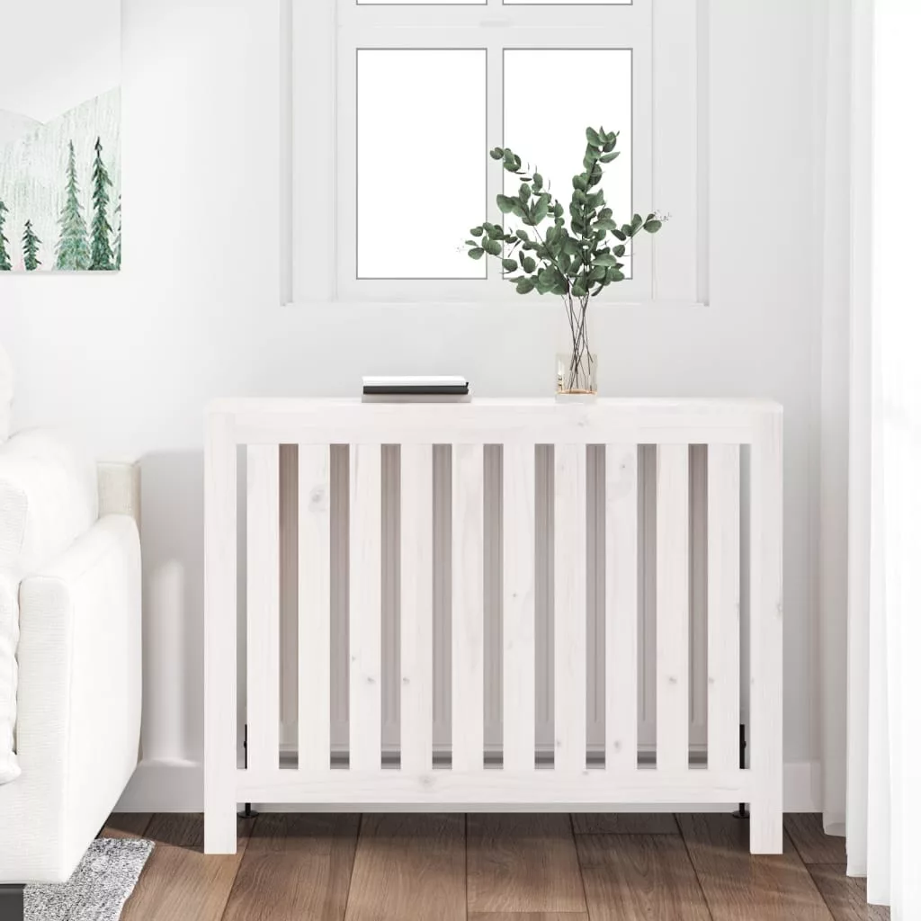 fehér tömör fenyőfa radiátorburkolat 108,5 x 19 x 84 cm