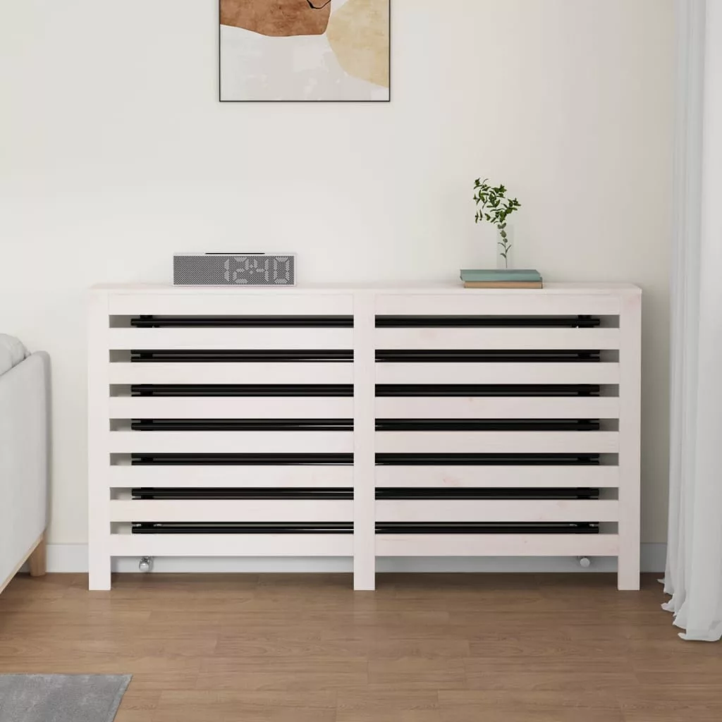 fehér tömör fenyőfa radiátorburkolat 153x19x84 cm