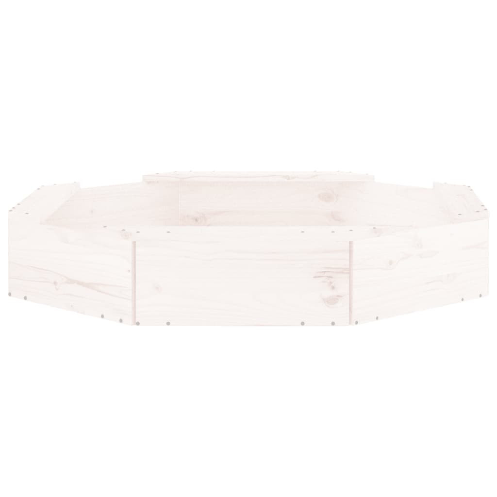 fehér nyolcszögű tömör fenyőfa homokozó ülésekkel