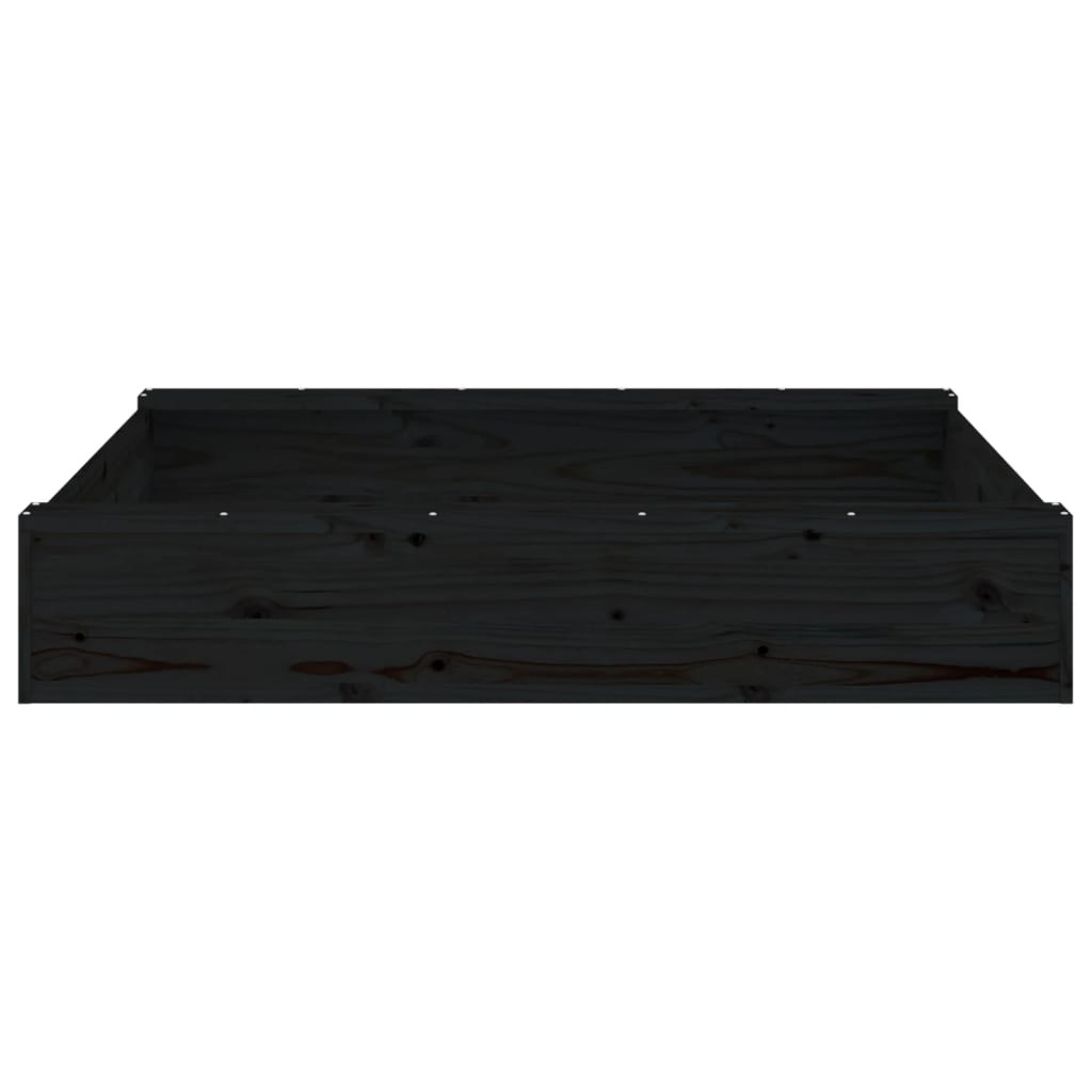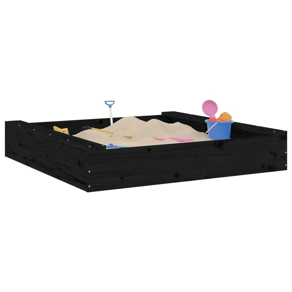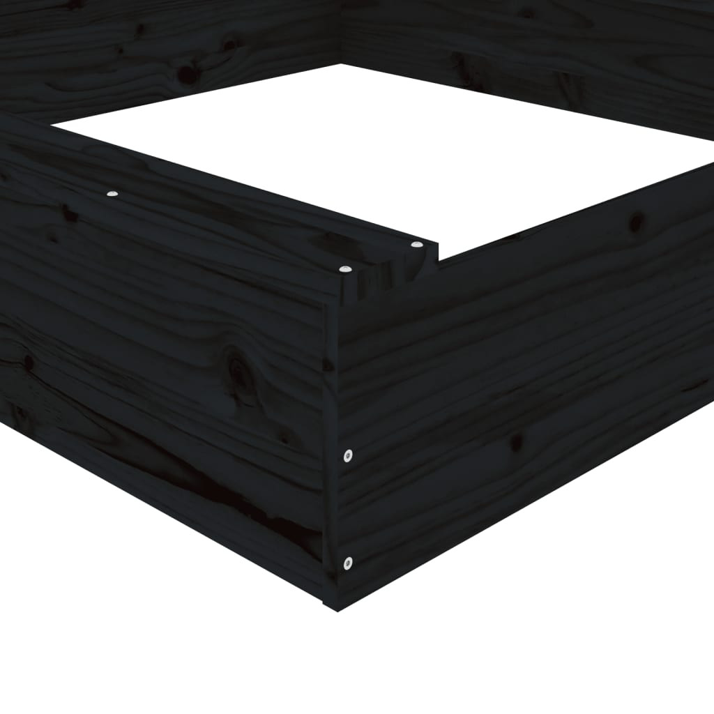 fekete négyszögű tömör fenyőfa homokozó ülésekkel