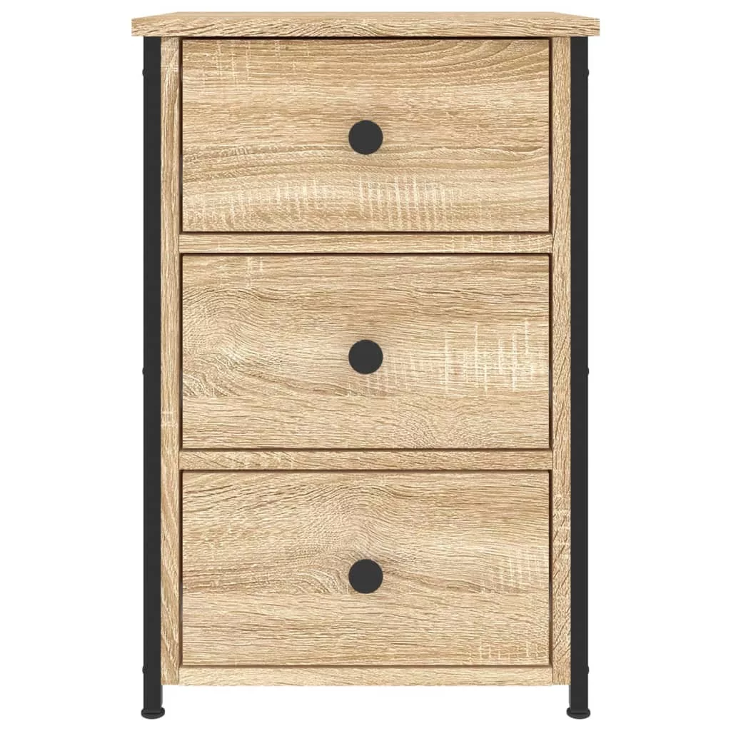Ezek az ipari stílusú éjjeliszekrények otthona időtálló kiegészítői. Tartós anyag: A szerelt fa kivételes minőségű, sima felületű, szilárd, stabil, és ellenáll a nedvességnek.Masszív váz: Az éjjeliszekrény vasváza masszív szerkezetet és stabilitást biztosít.Bőséges tárolóhely: A 3 fiókkal felszerelt kisasztal bőséges tárolóhelyet kínál alapvető holmijai elérhető közelségben történő, rendezett tárolásához.Állítható lábak: A kisszekrény 4 állítható lábbal van felszerelve, amelyek megvédik a padlót a karcolásoktól, és stabilan tartják azt egyenetlen padlón.Bemutatófunkció: Kedvenc fotóit, dekorációit vagy virágait is elhelyezheti az éjjeliszekrény tetején a szoba dekorációjának gazdagítása érdekében. Figyelem:A felborulás elkerülése érdekében ezt a terméket a mellékelt fali rögzítőeszközzel kell használni.