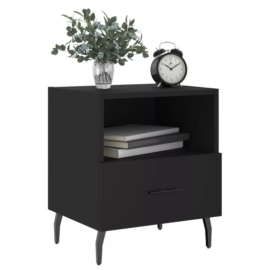 2 db fekete szerelt fa és vas éjjeliszekrény 40 x 35 x 47,5 cm