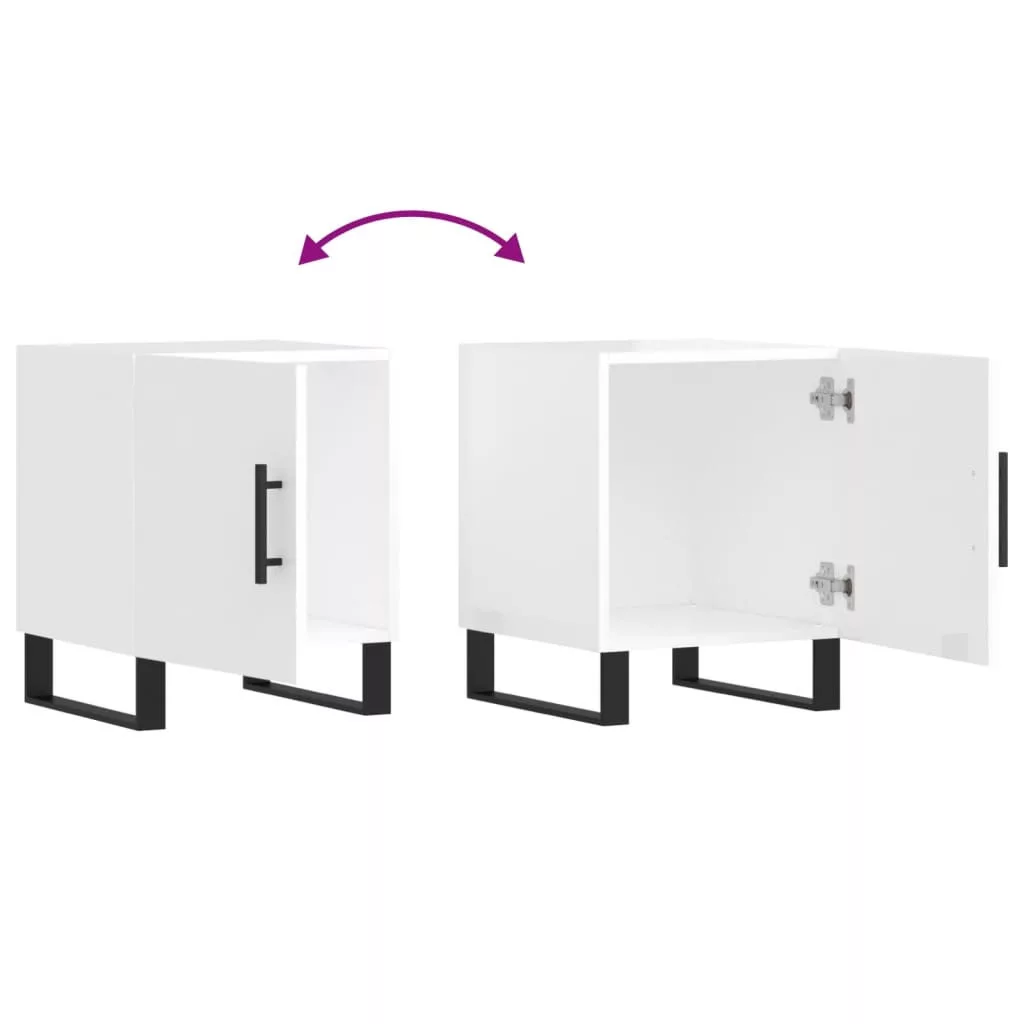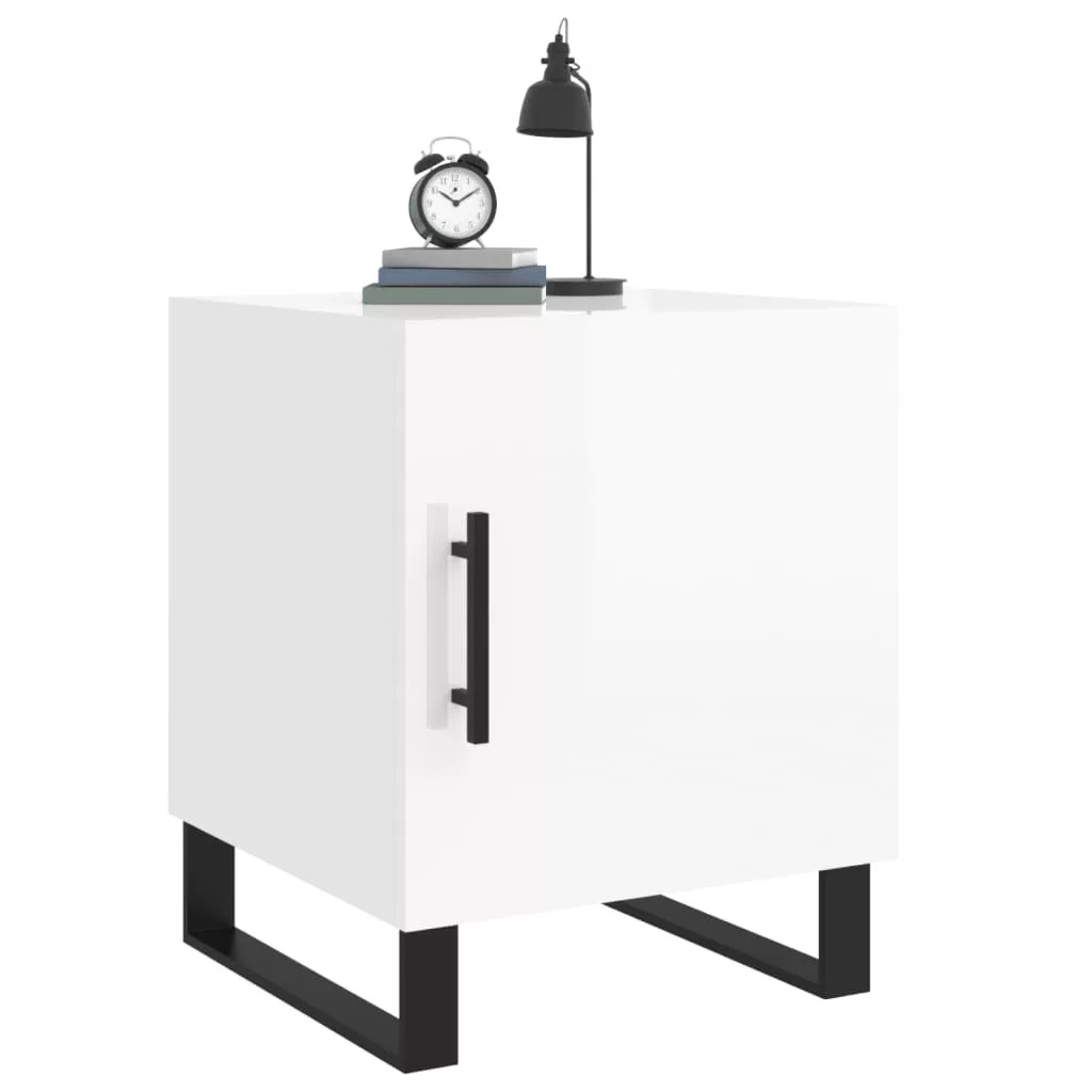 magasfényű fehér szerelt fa éjjeliszekrény 40 x 40 x 50 cm