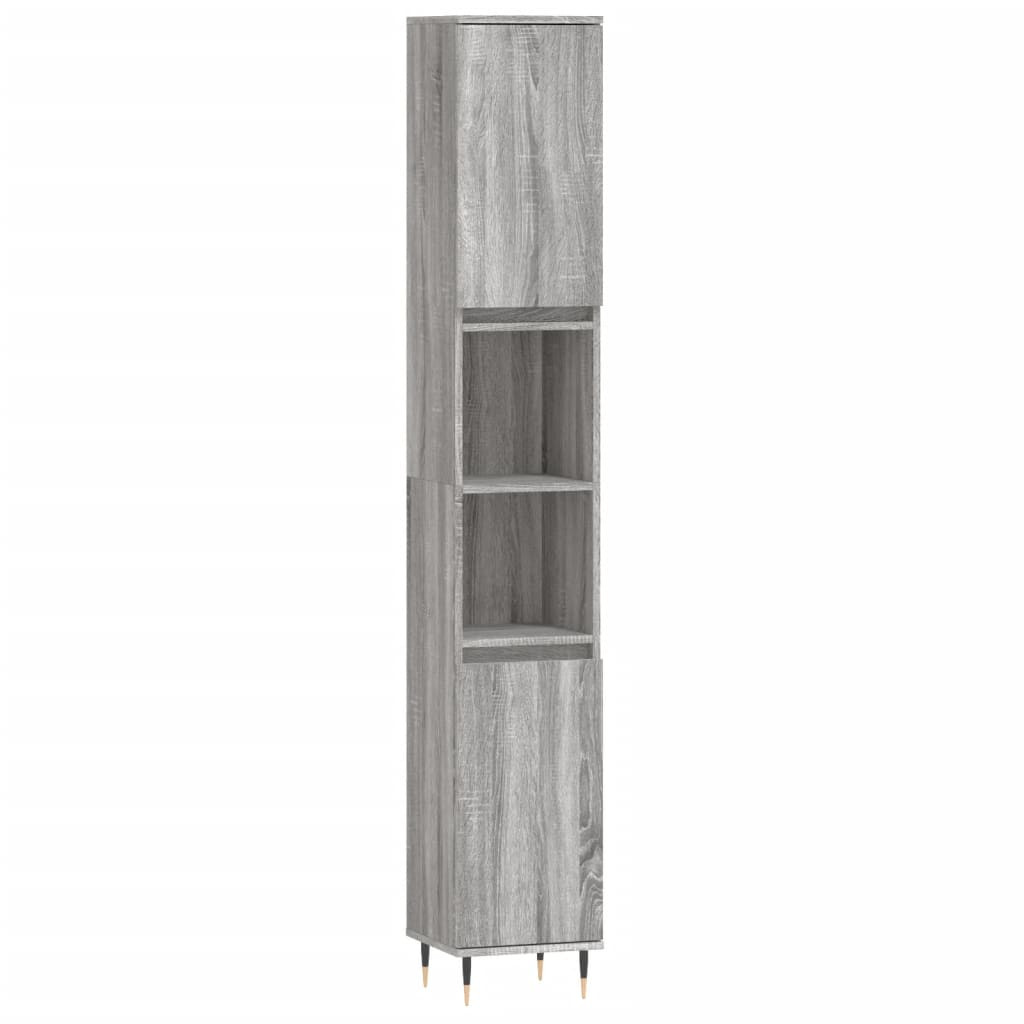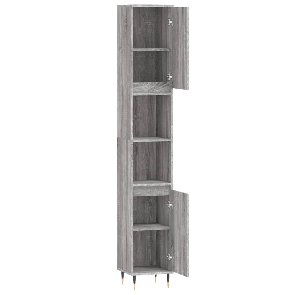 szürke sonoma színű szerelt fa fürdőszobaszekrény 30x30x190 cm