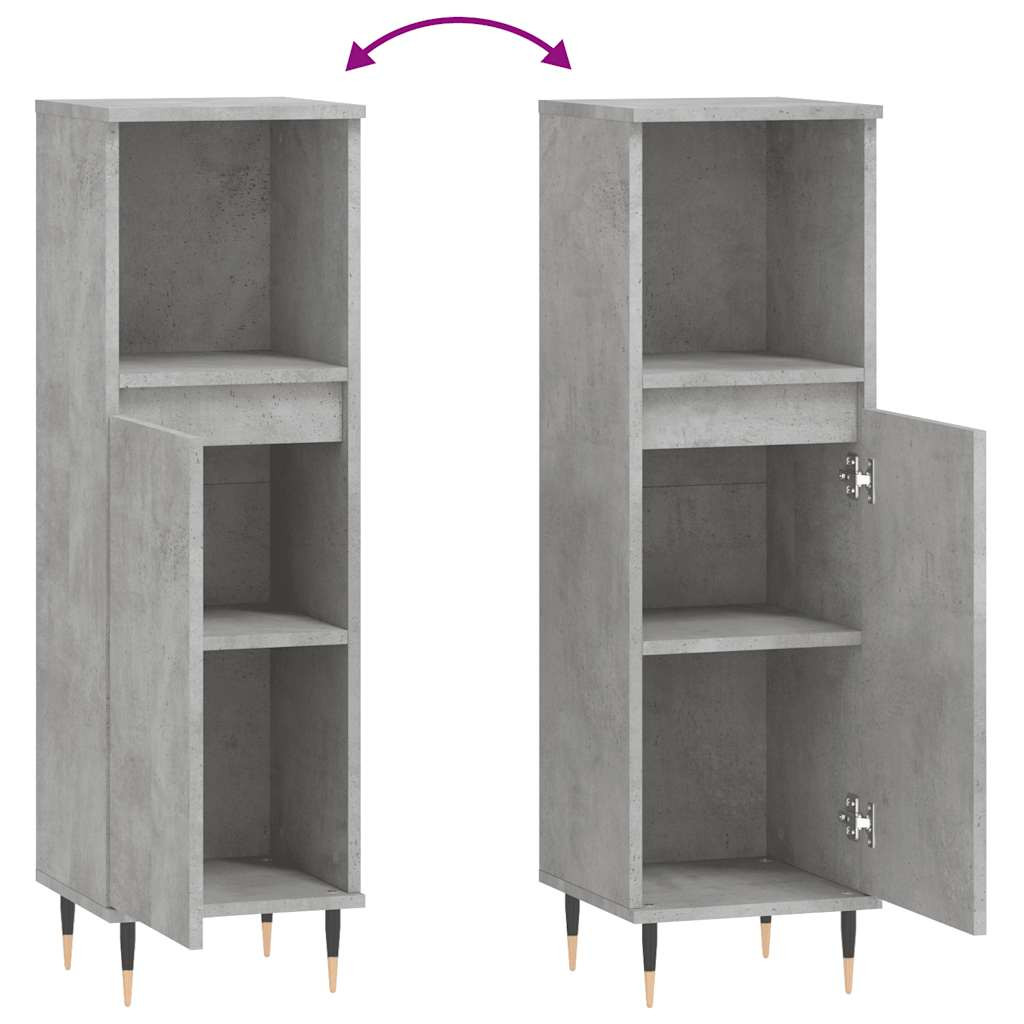 betonszürke szerelt fa fürdőszobaszekrény 30 x 30 x 100 cm