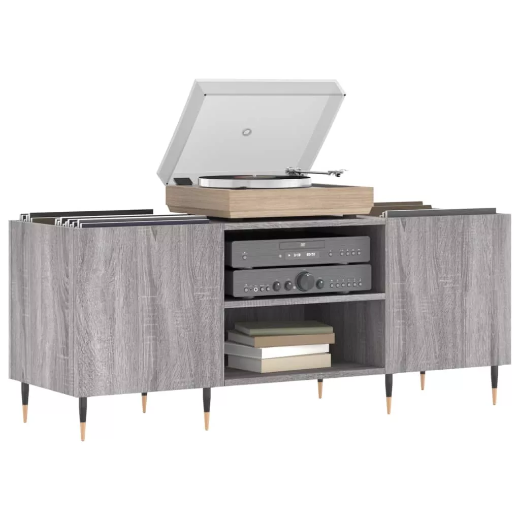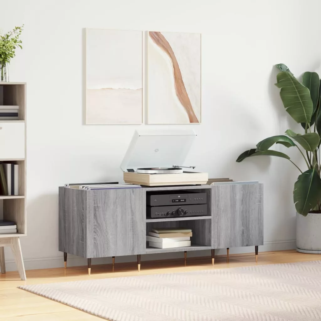 szürke sonoma színű szerelt fa hanglemezszekrény 121x38x48 cm