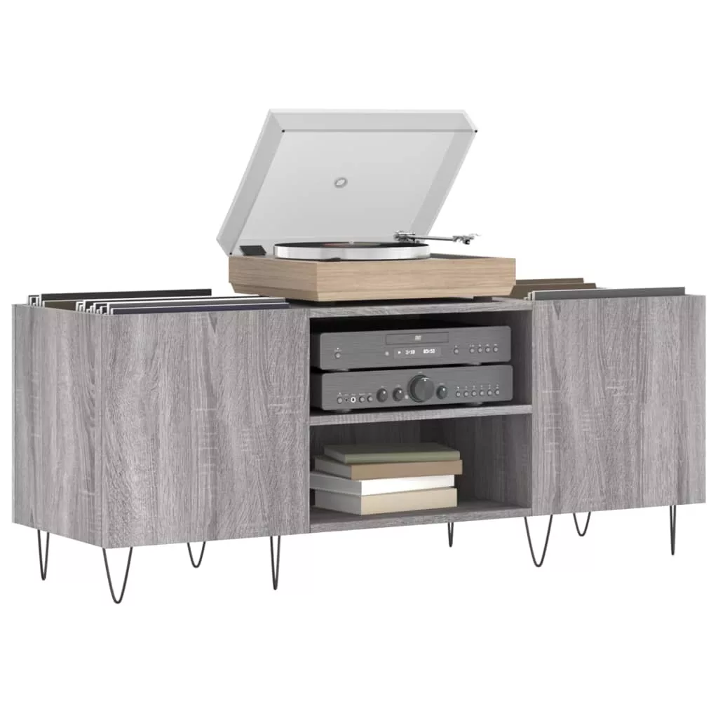 szürke sonoma színű szerelt fa hanglemezszekrény 121x38x48 cm