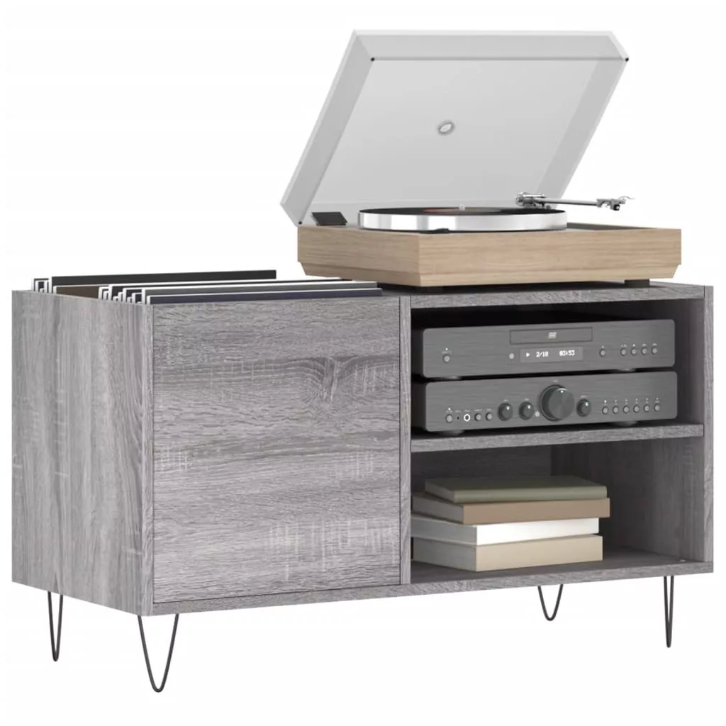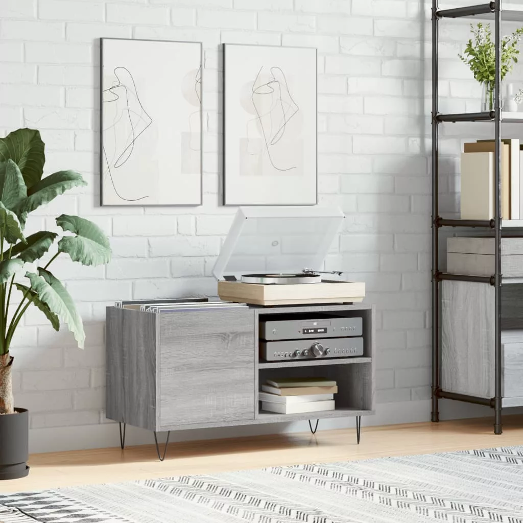 szürke sonoma színű szerelt fa hanglemezszekrény 85x38x48 cm