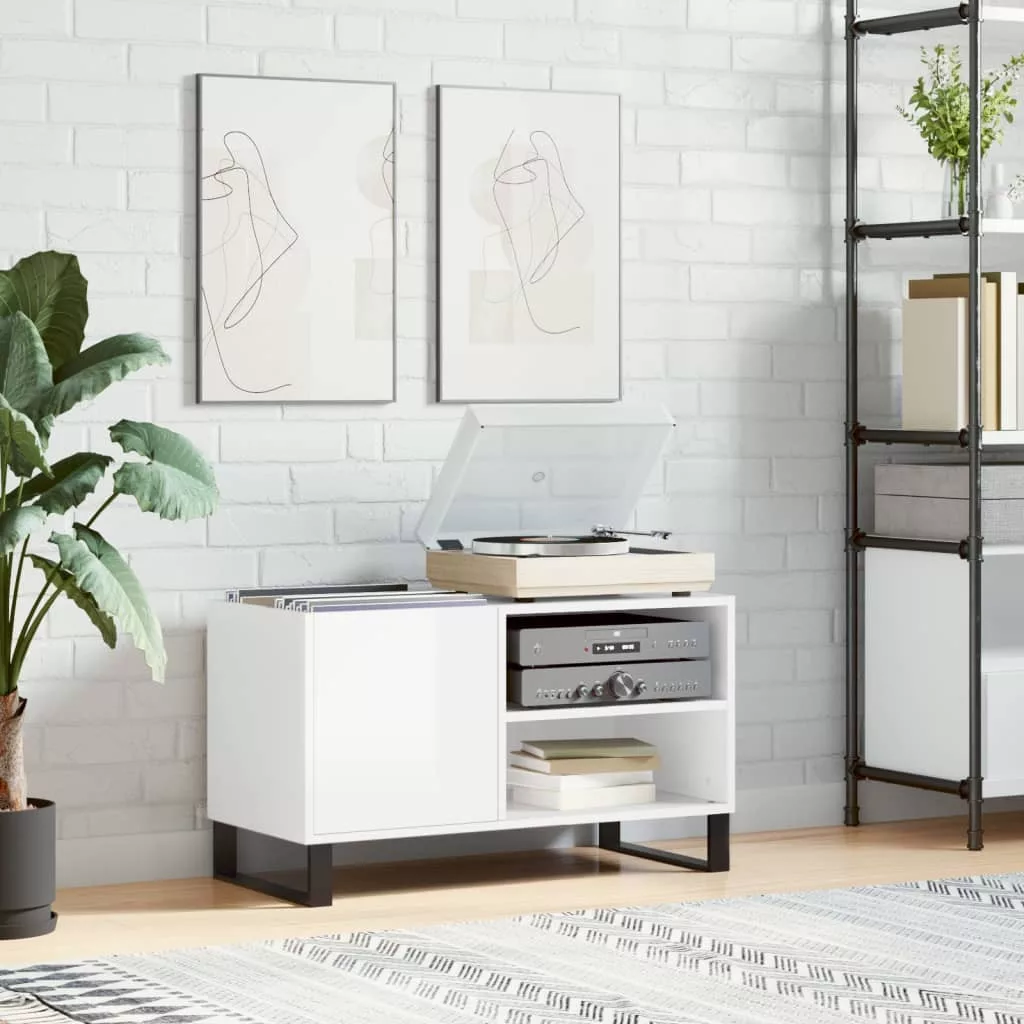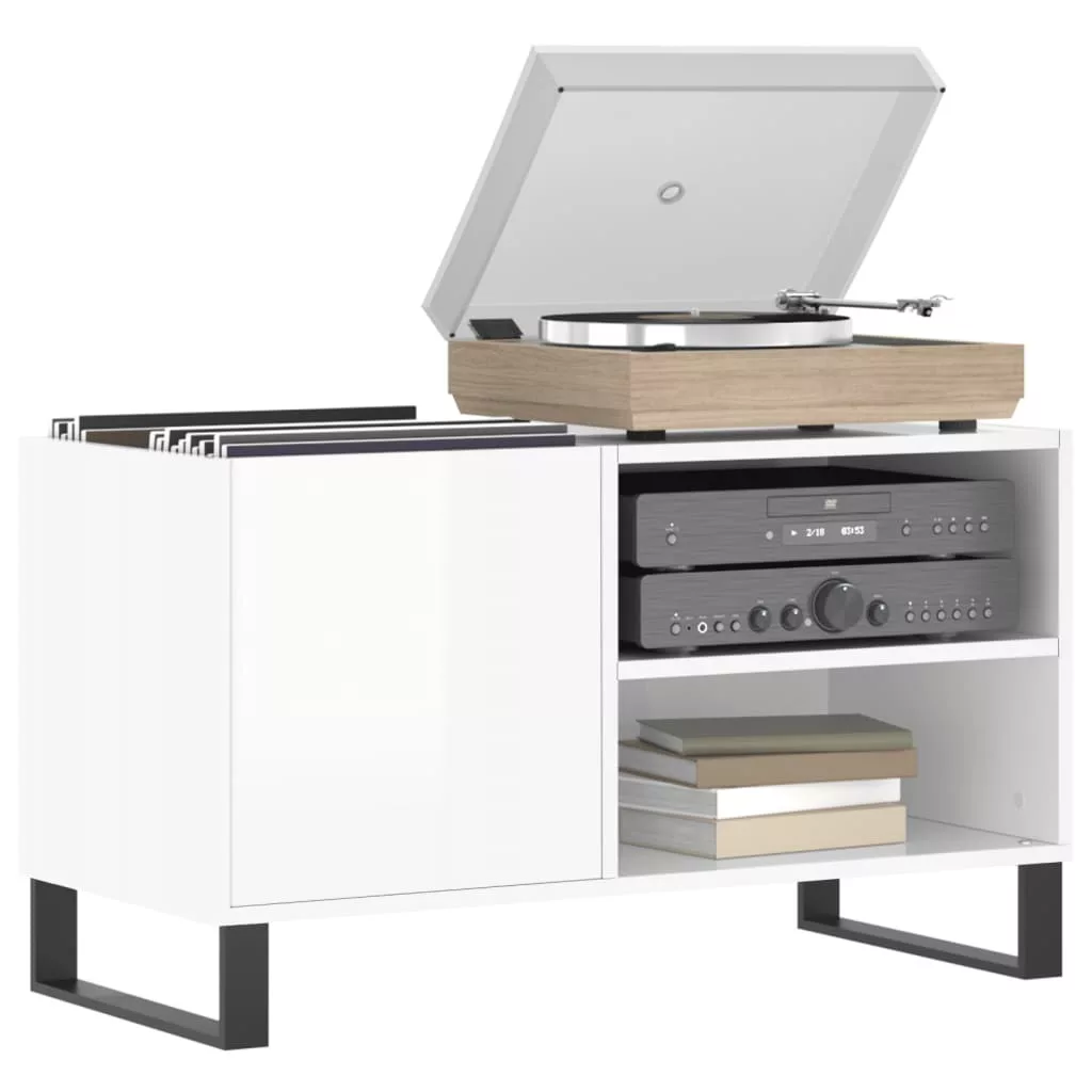 magasfényű fehér szerelt fa hanglemezszekrény 85x38x48 cm