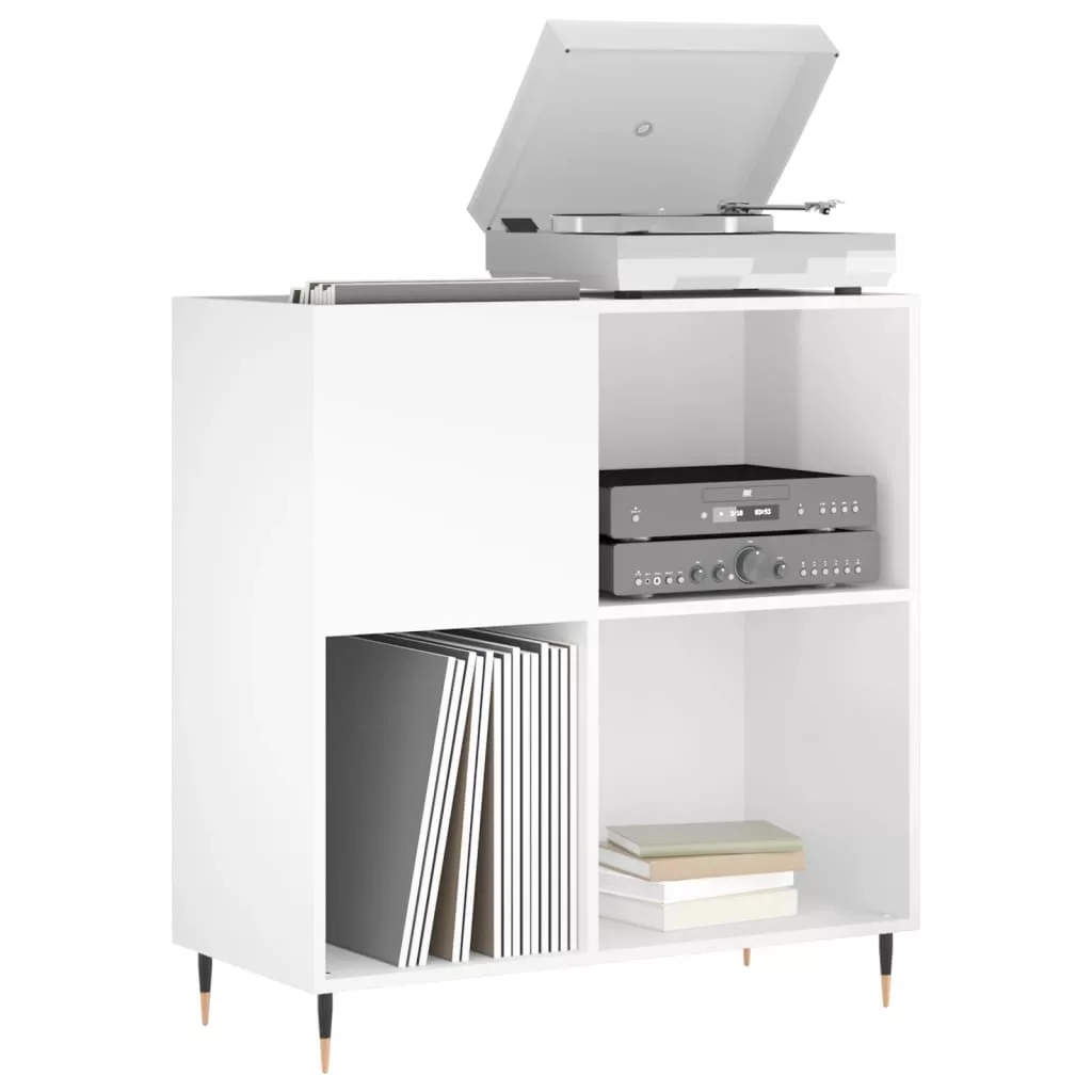 magasfényű fehér szerelt fa hanglemezszekrény 84,5 x 38 x 89 cm