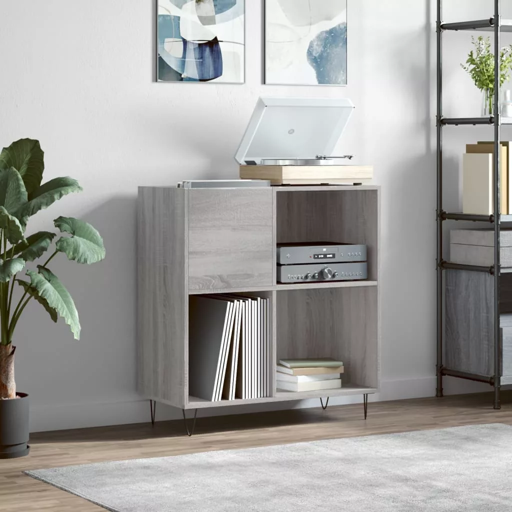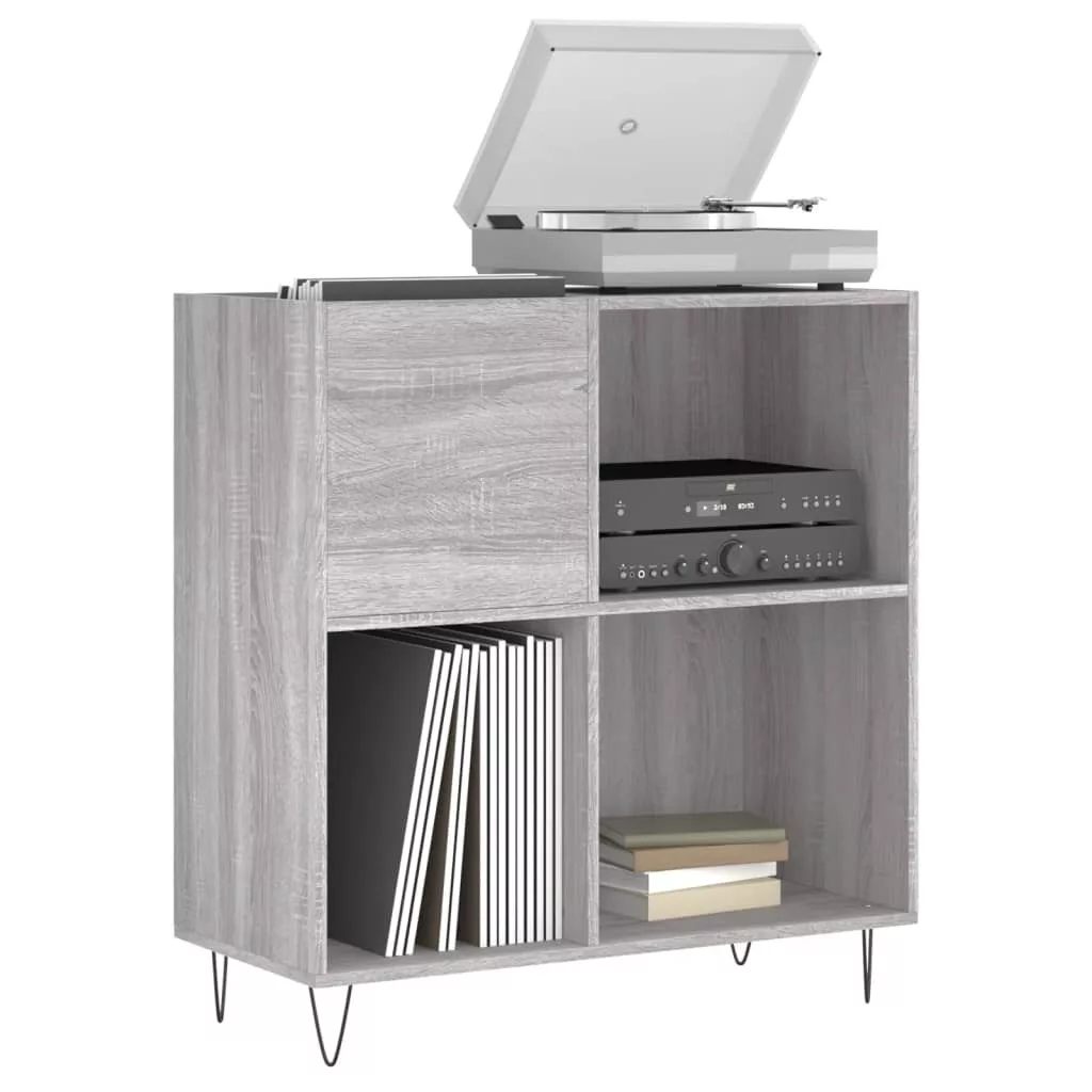 szürke sonoma színű szerelt fa hanglemezszekrény 84,5x38x89 cm