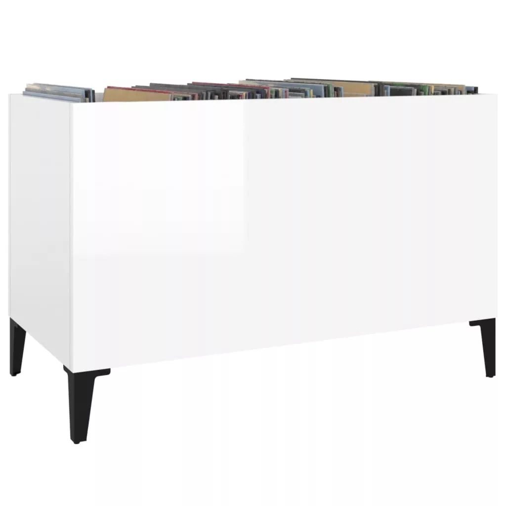 magasfényű fehér szerelt fa hanglemezszekrény 74,5x38x48 cm