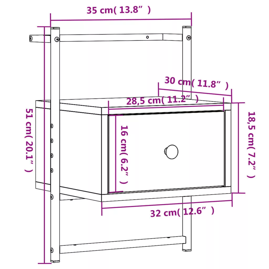 füstös tölgy színű fali szerelt fa éjjeliszekrény 35x30x51 cm
