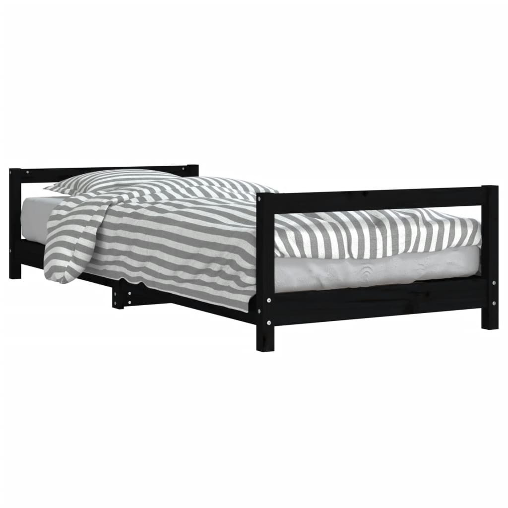 fekete tömör fenyőfa gyerekágykeret 90 x 190 cm