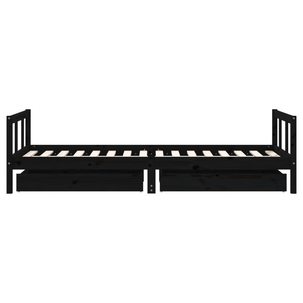 fekete tömör fenyőfa gyerekágykeret fiókokkal 90 x 200 cm