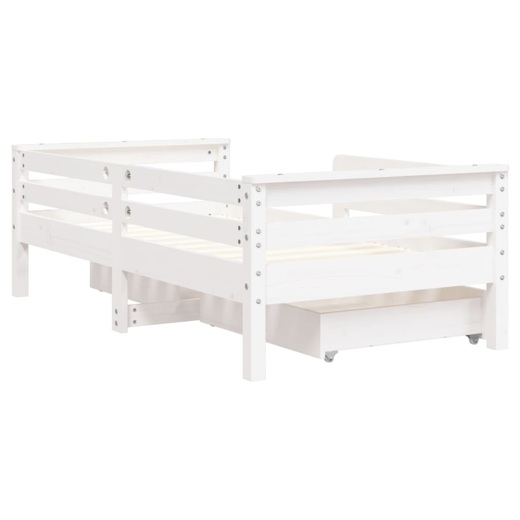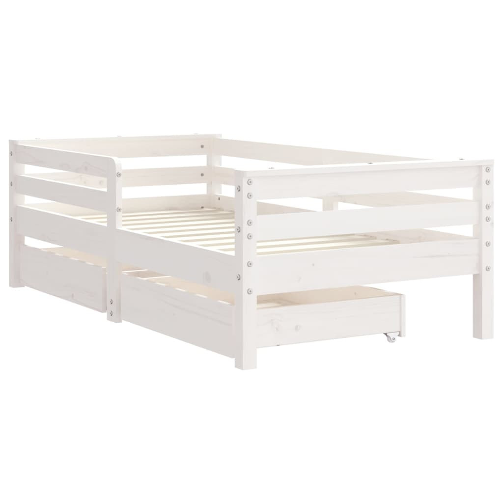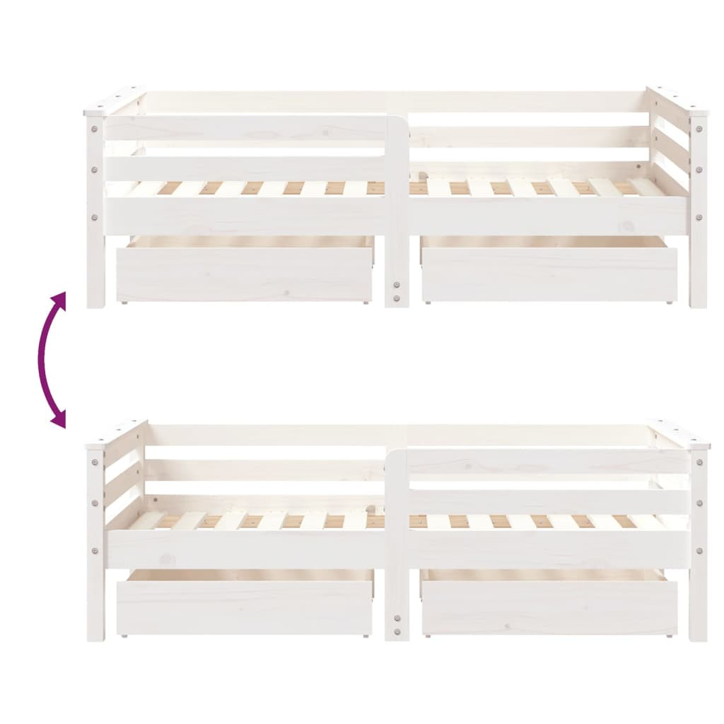 fehér tömör fenyőfa gyerekágykeret fiókokkal 70 x 140 cm